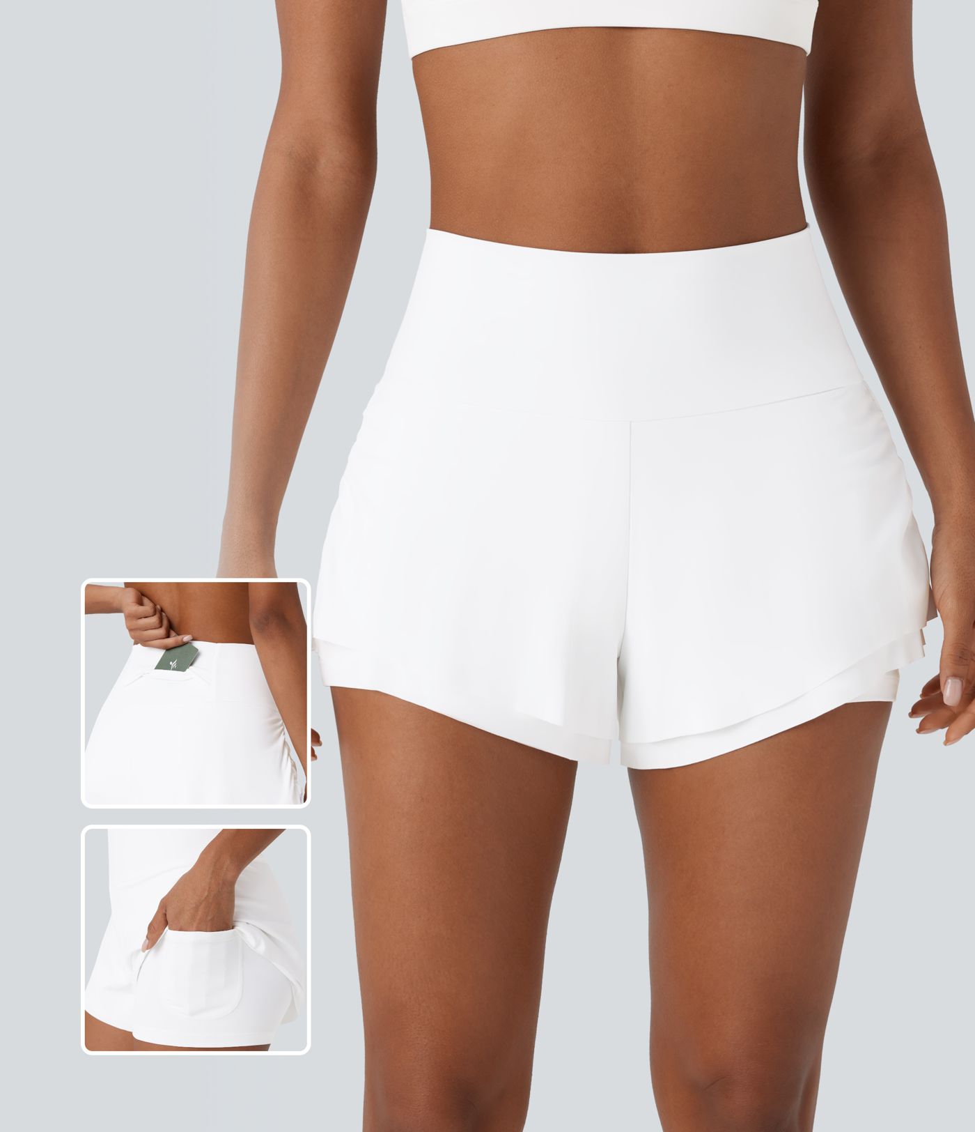 SoftlyZero™ Airy High Waisted Ruched Pockets Curved Hem 2-in-1 Cool Touch Yoga Shorts