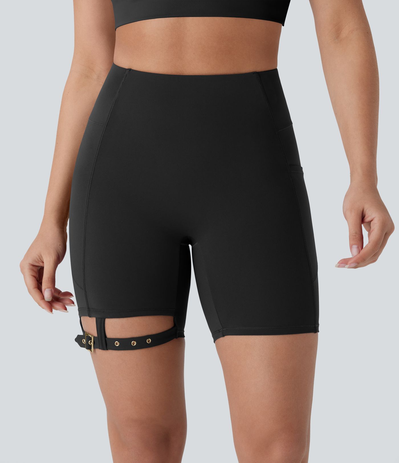 SoftlyZero™ Airy High Waisted Pocket Adjustable Buckle Cool Touch Dance Biker Shorts 7''