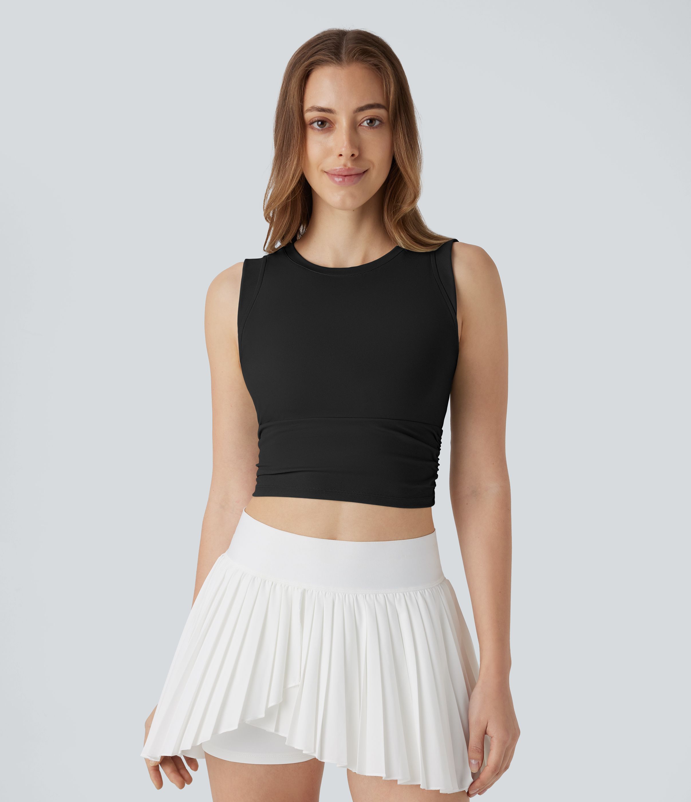 SoftlyZero™ Airy Round Neck Ruched Cool Touch Cropped Tennis Tank Top