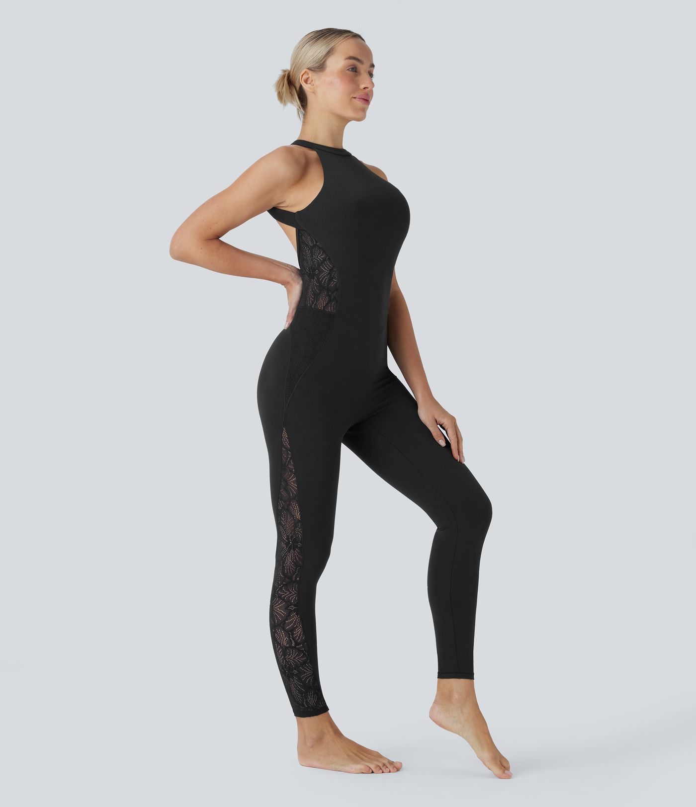 SoftlyZero™ Contrast Lace Skinny Yoga Jumpsuit-UPF50+