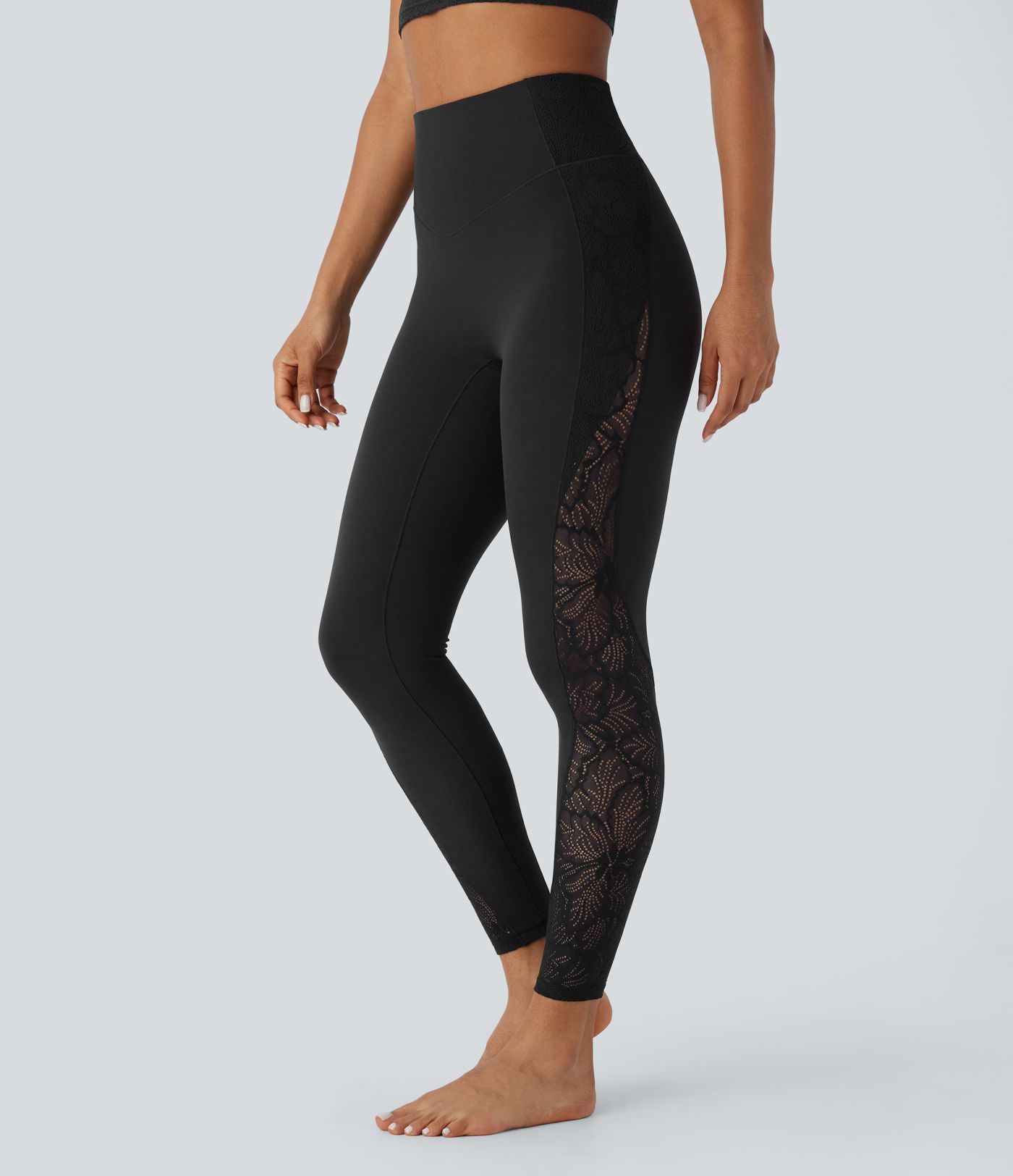 SoftlyZero™ High Waisted Pocket Contrast Lace Yoga Leggings-UPF50+