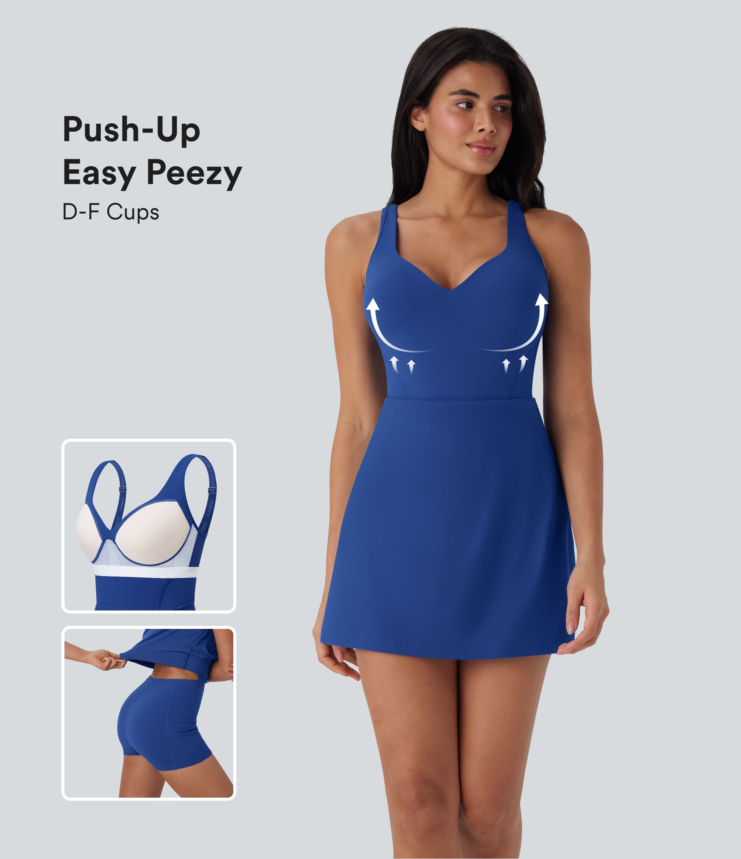 SoftlyZero™ Plush Push-Up Molded Cups 2-in-1 Yoga Active Dress with Pockets-Easy Peezy D-F Cups