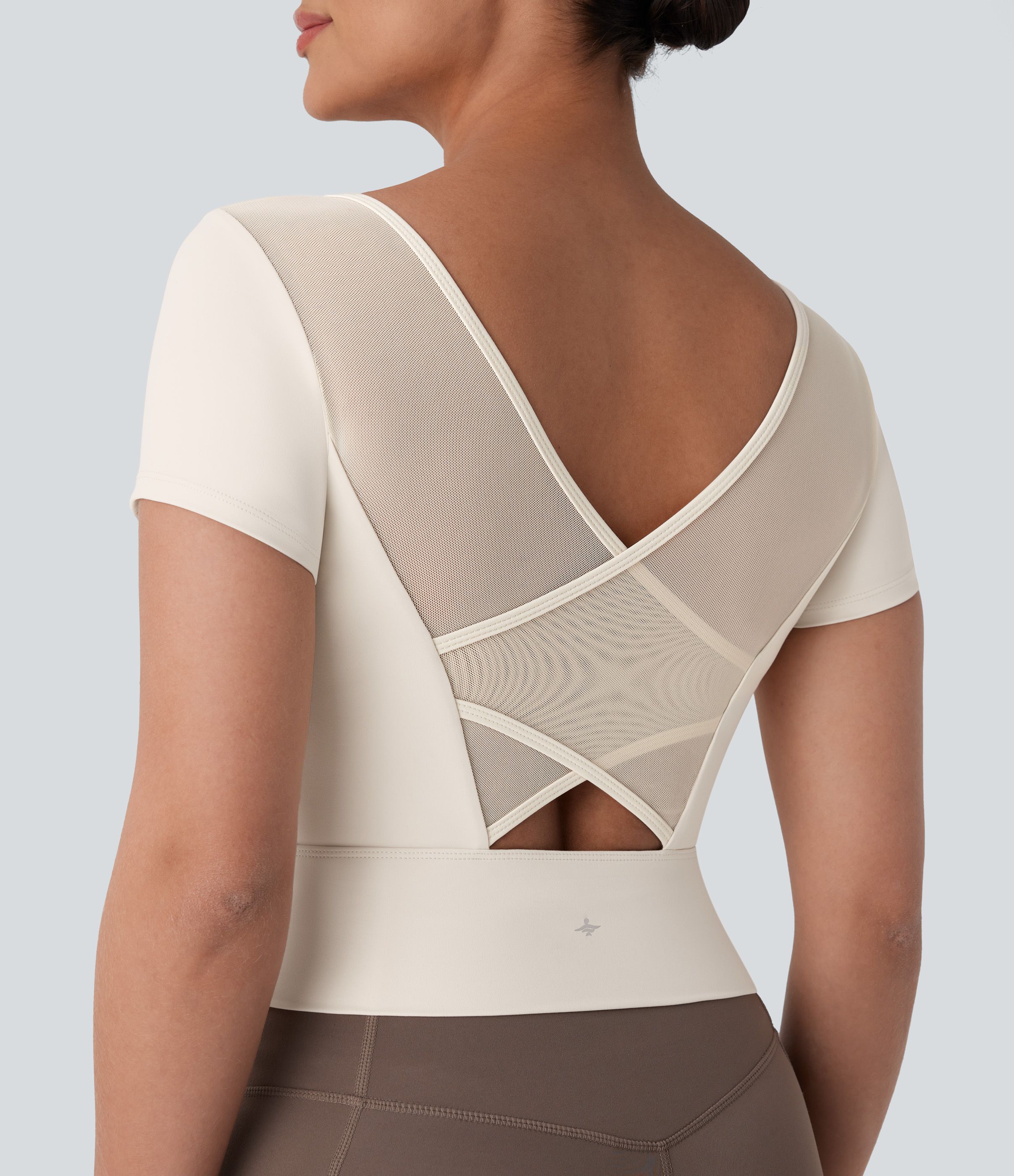 SoftlyZero™ Plush U Neck Short Sleeve Crossover Contrast Mesh Yoga Sports Top