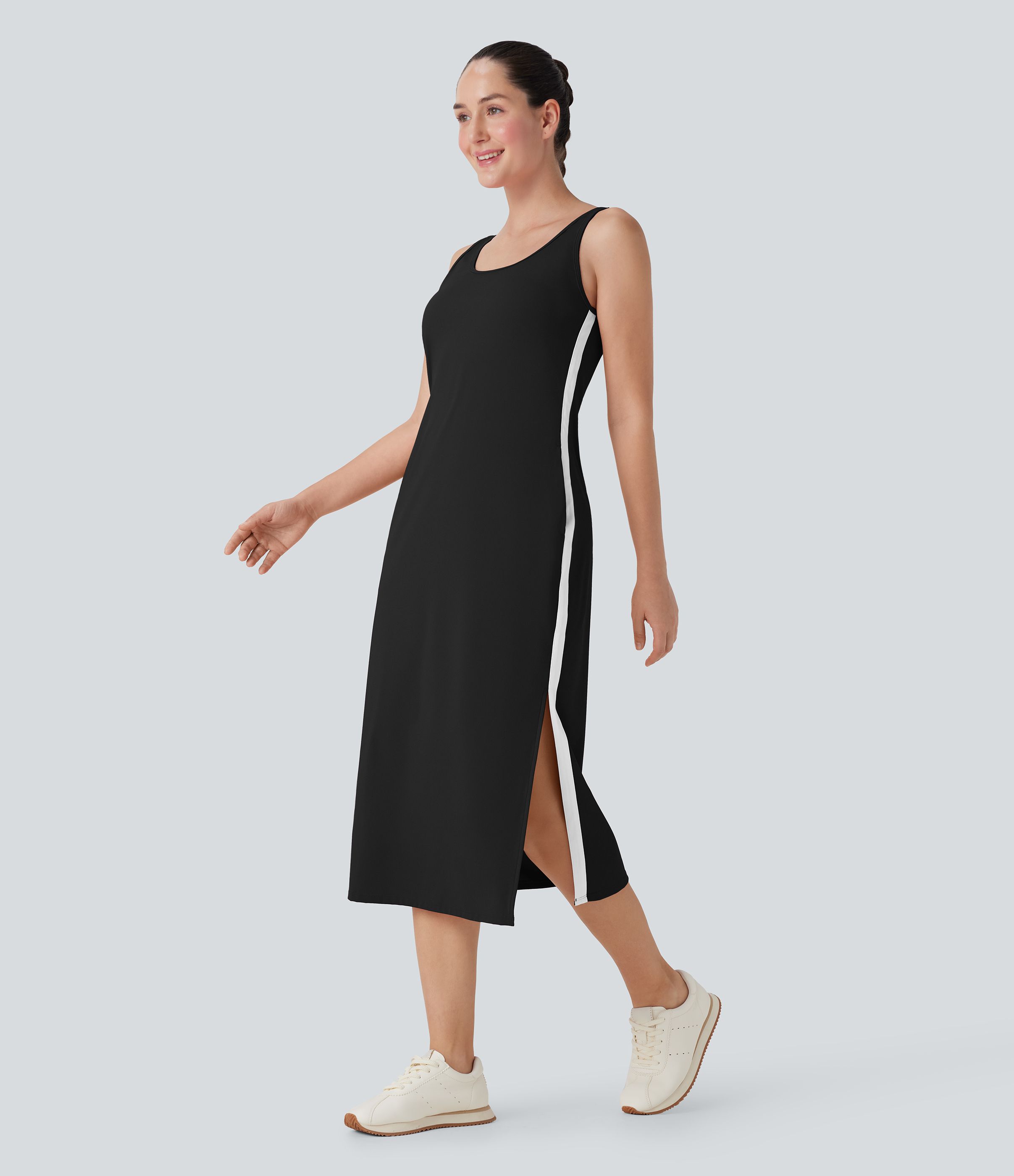 SoftlyZero™ Airy Color Block Hem Cool Touch Workout Active Tank Dress with Pockets-UPF50+
