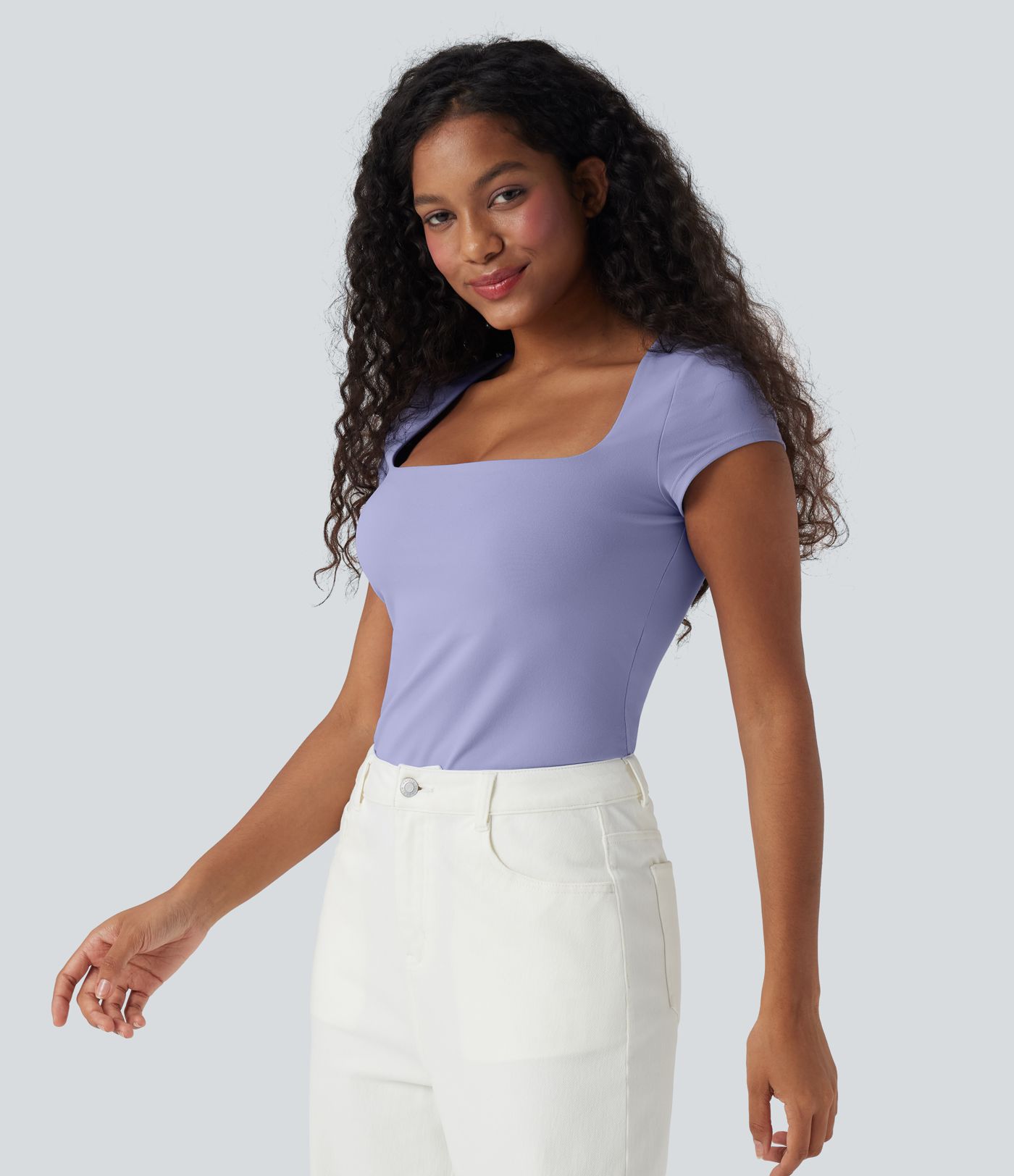 Square Neck Short Sleeve Casual Top
