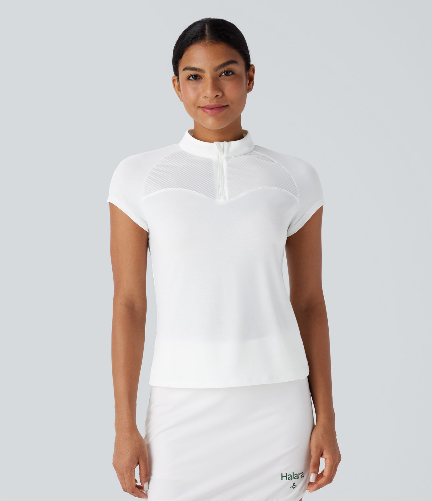 Stand Collar Zipper Contrast Mesh Quick Dry Golf Sports Top