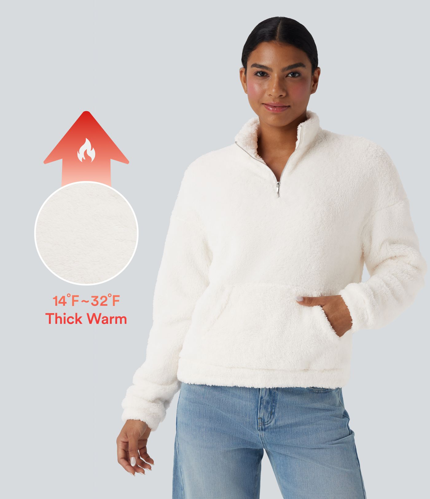 Stand Collar Long Sleeve Fleece Casual Sweatshirt with Kangaroo Pocket