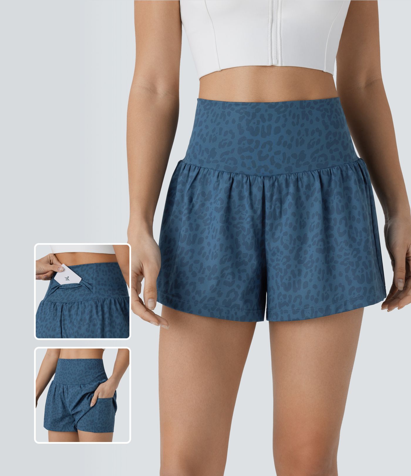 Shorts de yoga 2-en-1 à imprimé léopard, très taille haute, poches & poches