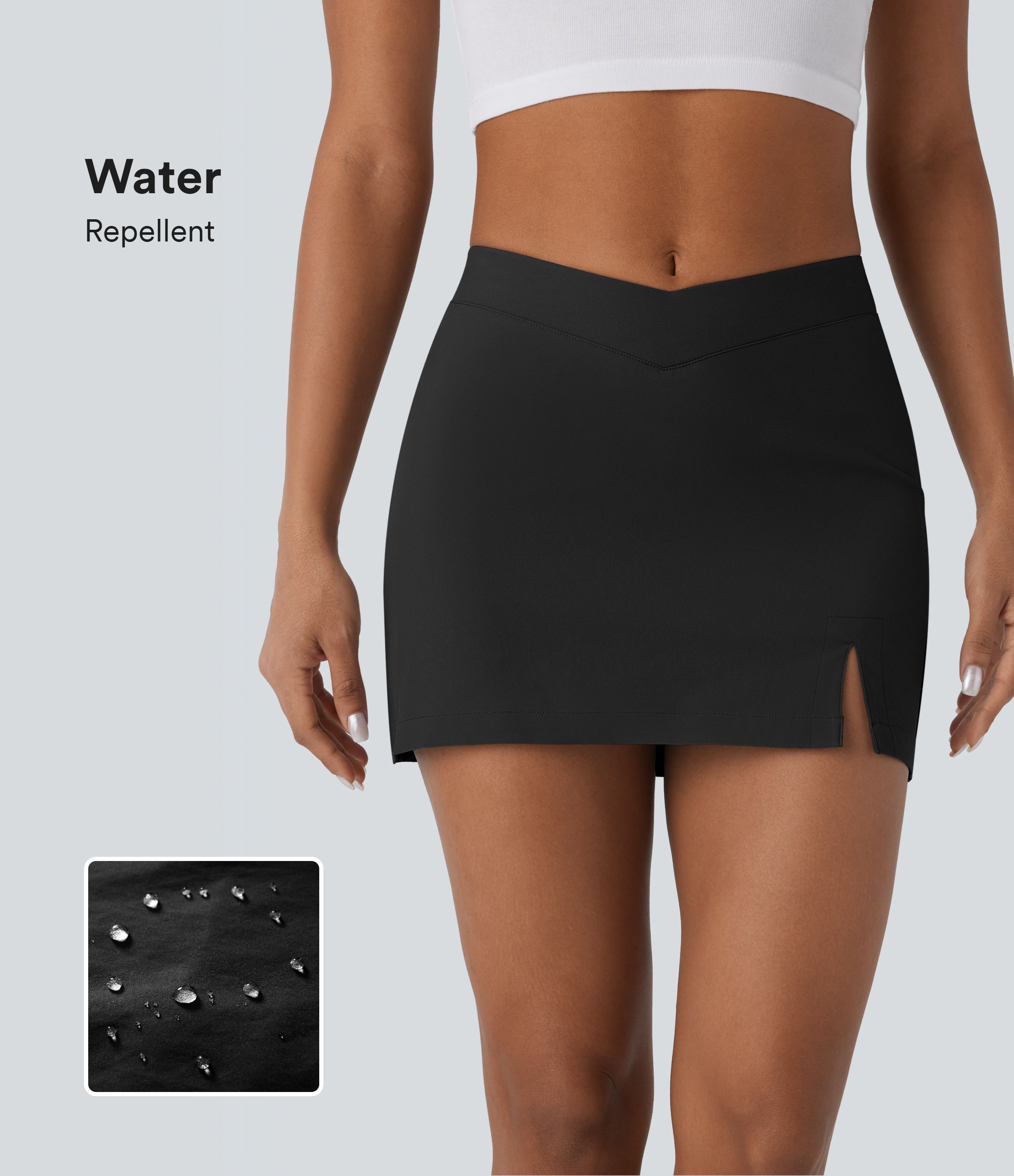 Water Repellent Low Rise V Shaped Pocket Twill Mini Casual Skirt