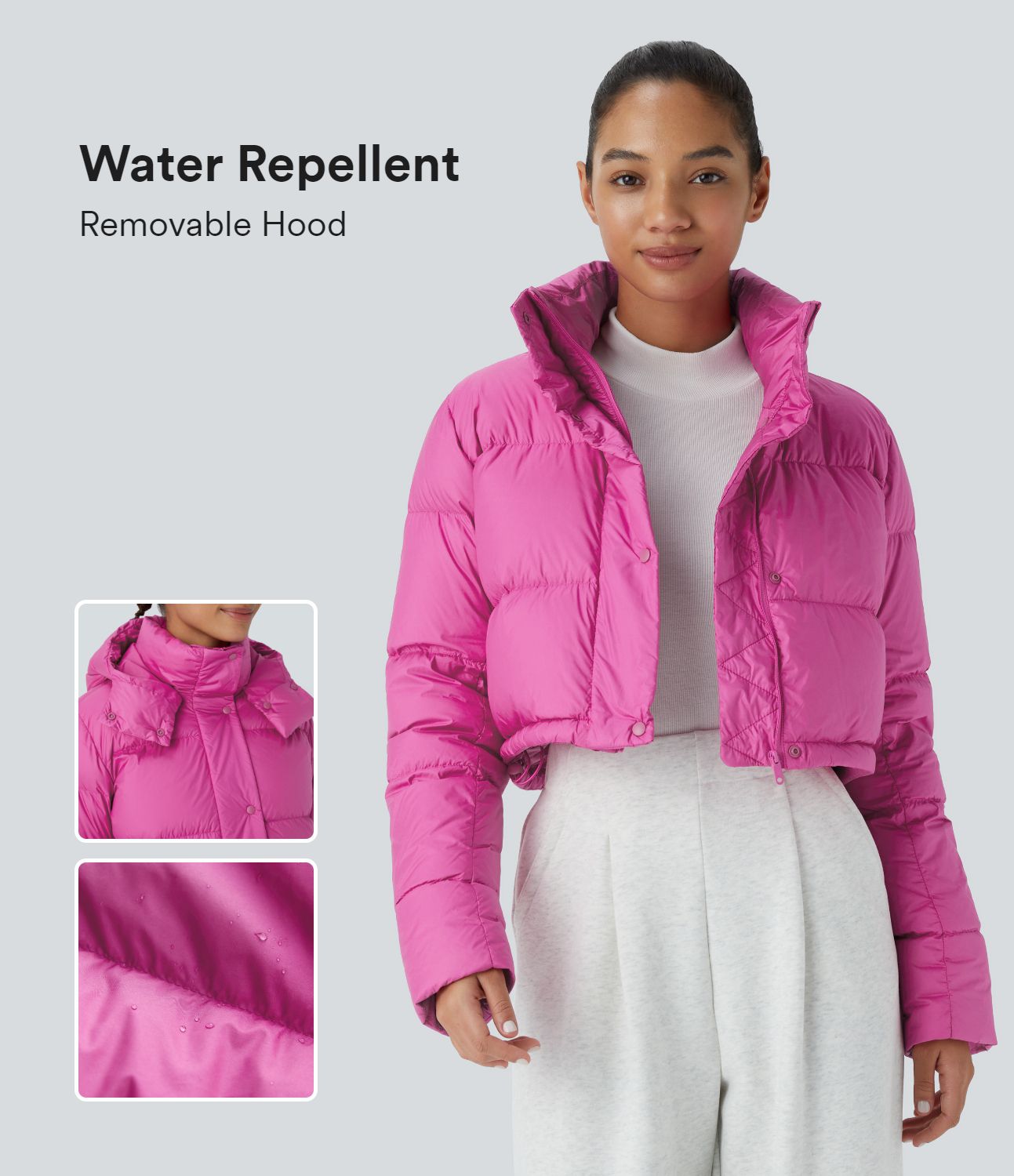 Water Repellent Removable Hood Long Sleeve Invisible Pocket Casual Puffer Down Jacket