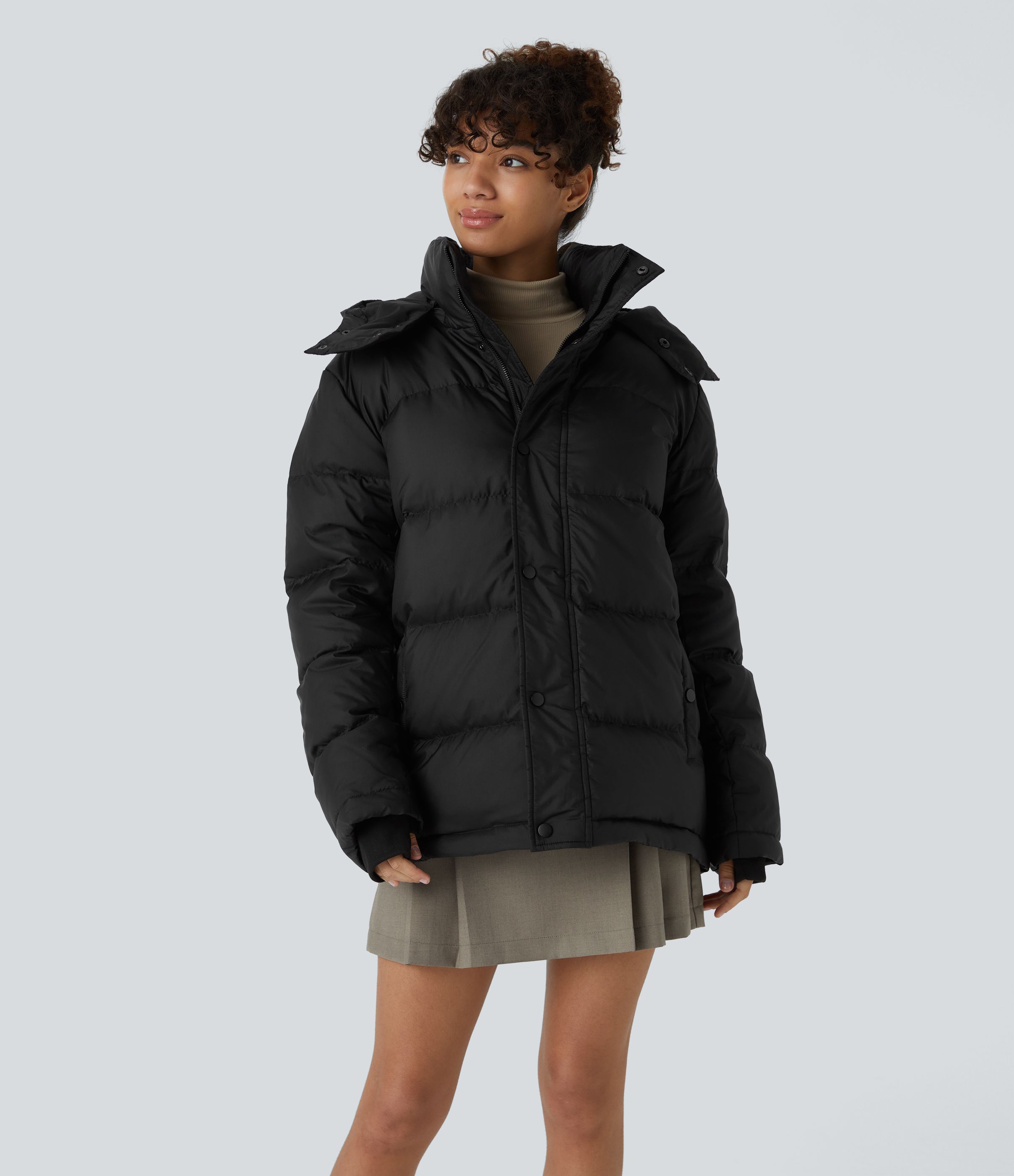 Water Repellent Removable Hood Stand Collar Zipper Long Sleeve Pockets Casual Puffer Down Jacket
