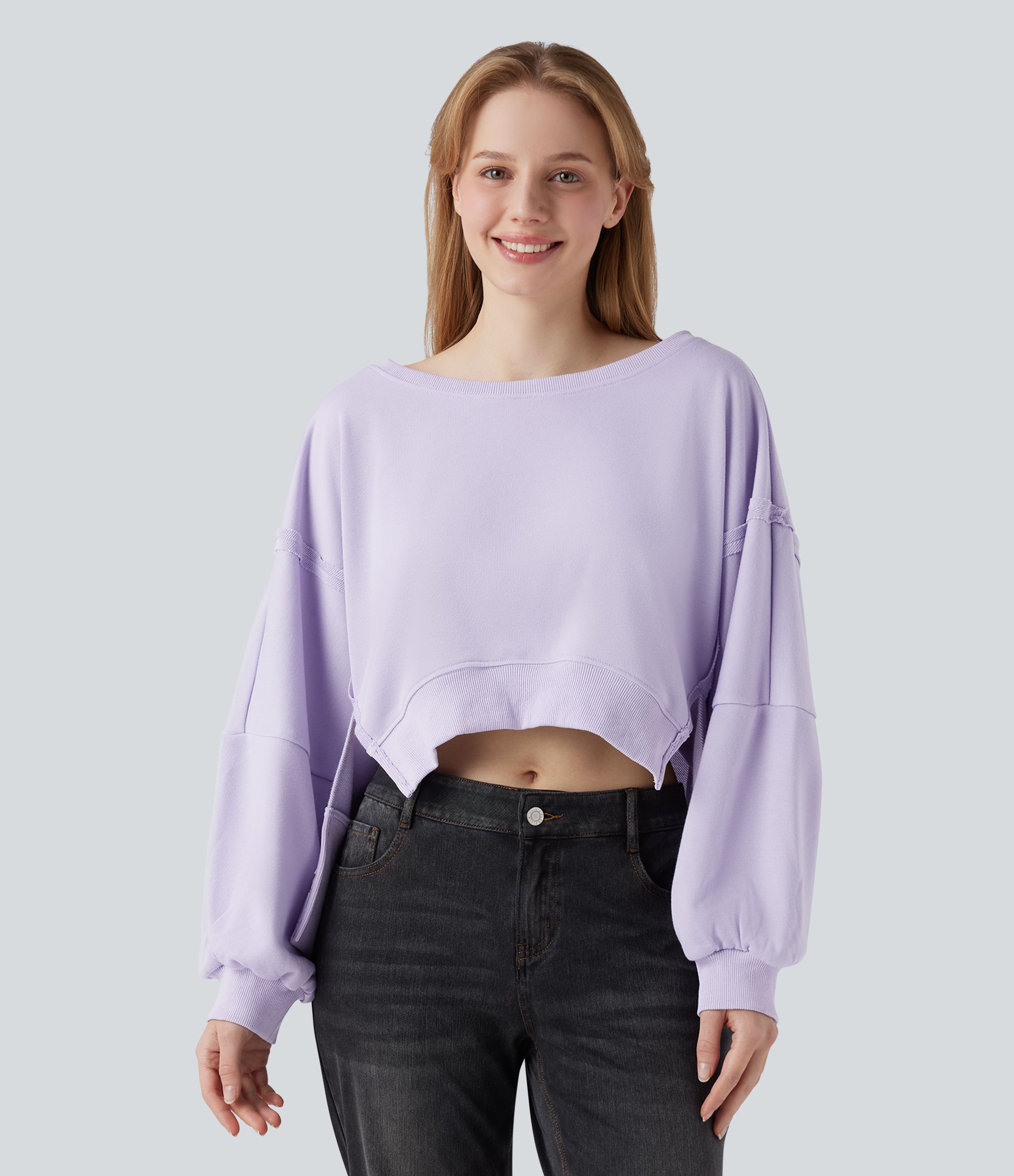 Boat Neck Long Sleeve High Low Casual Sweatshirt