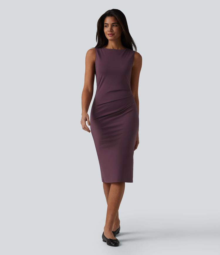 Boat Neck Sleeveless Pencil Midi Work Dress