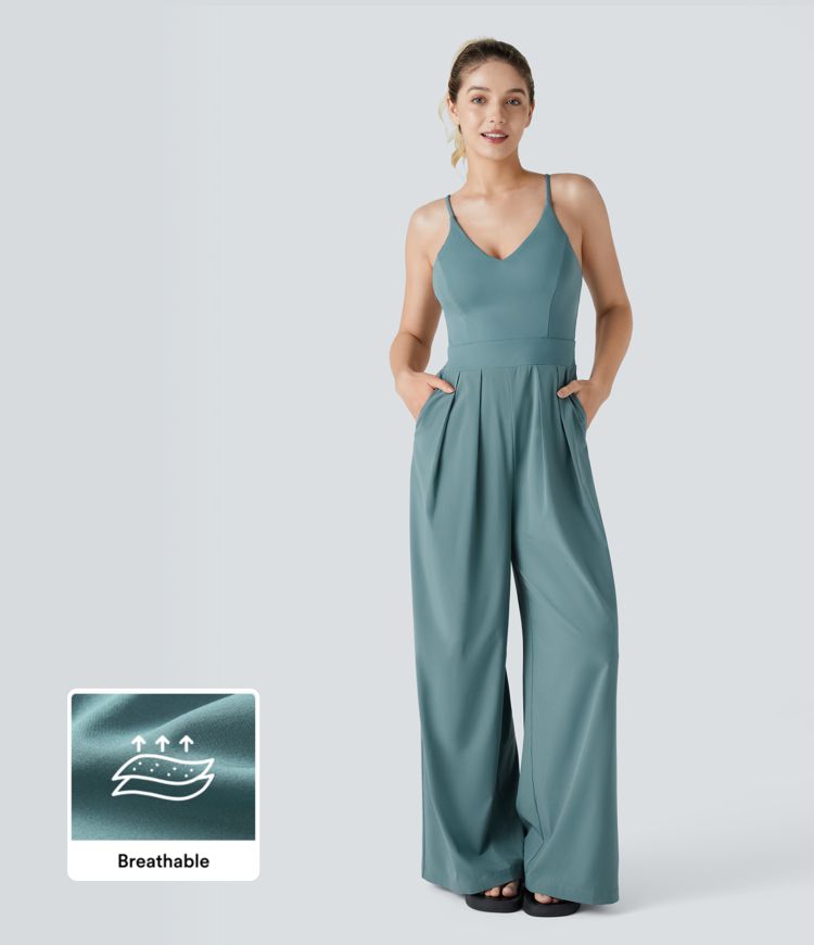 Breezeful™ Backless Side Invisible Zipper Pocket Wide Leg Quick Dry Resort Slip Jumpsuit