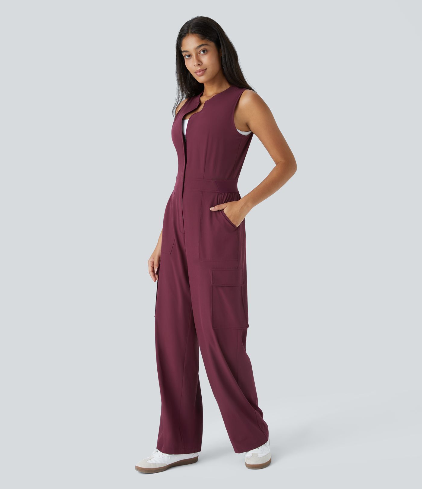 Breezeful™ Sleeveless Zipper Snap Pockets Quick Dry Casual Cargo Jumpsuit