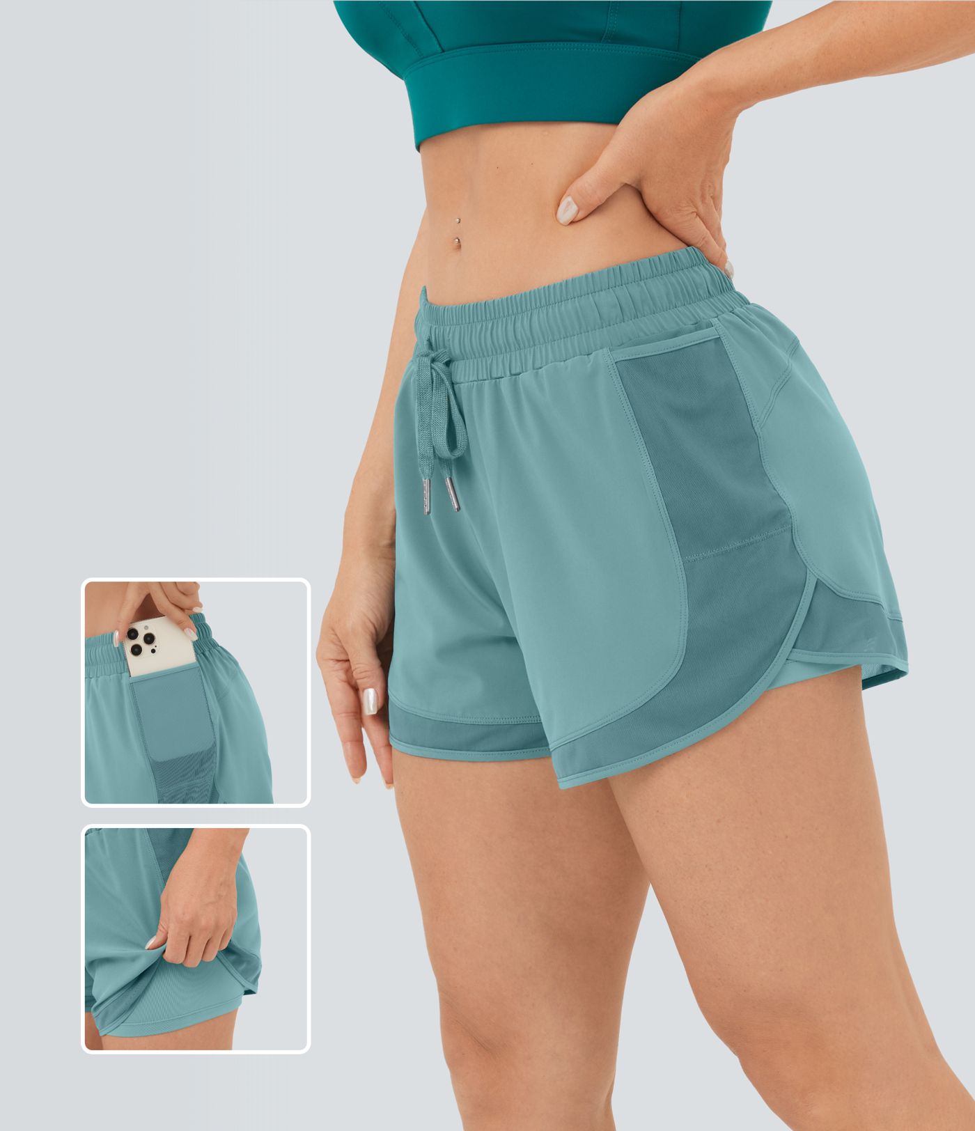 Breezeful™ High Waisted Drawstring Side Mesh Pocket 2-in-1 Quick Dry Running Shorts 3"