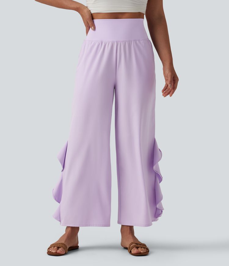 Breezeful™ High Waisted Ruffle Wide Leg Quick Dry Pants with Pockets