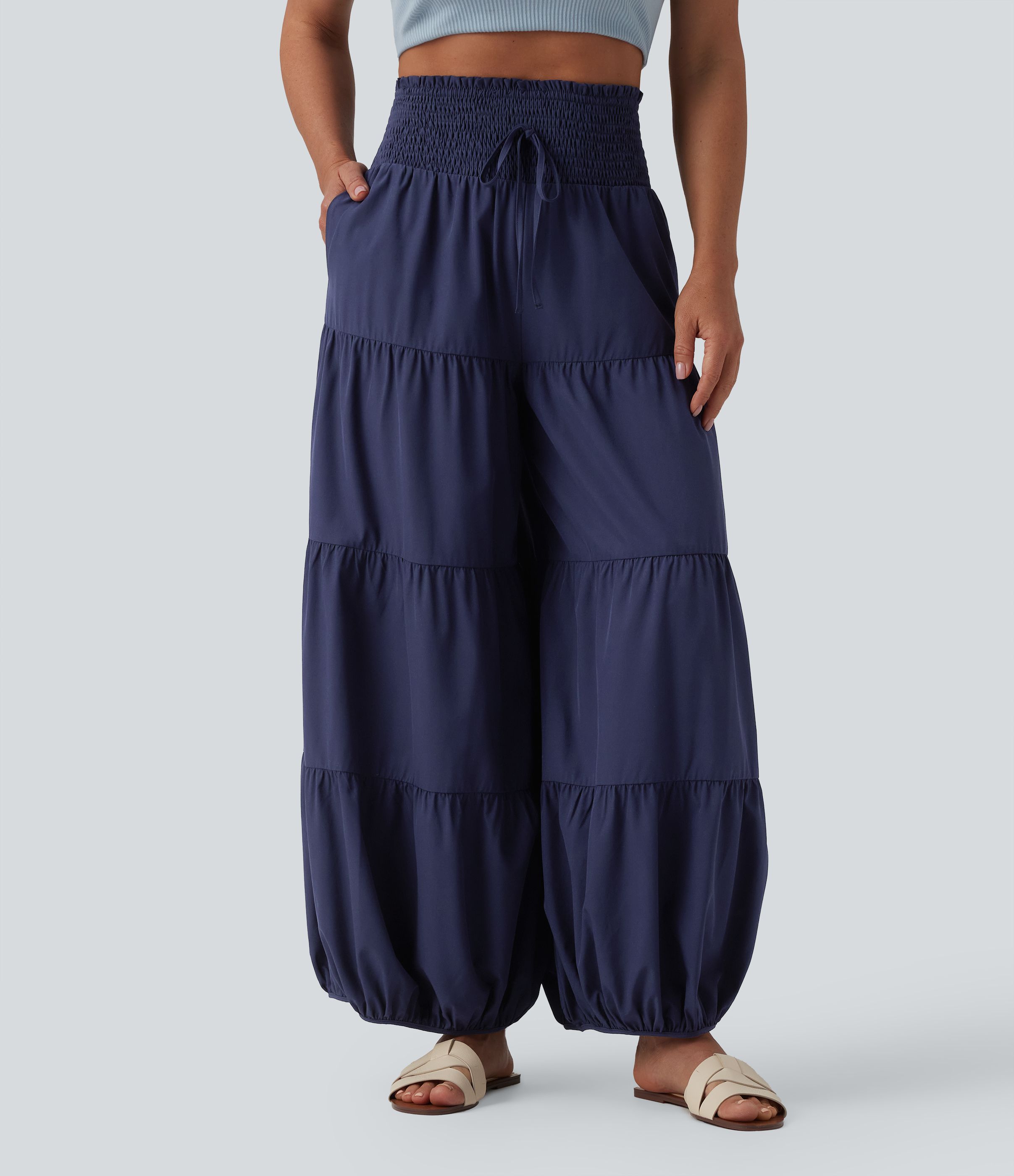 Breezeful™ High Waisted Shirred Knot Barrel Leg Quick Dry Bloomers Pants with Pockets