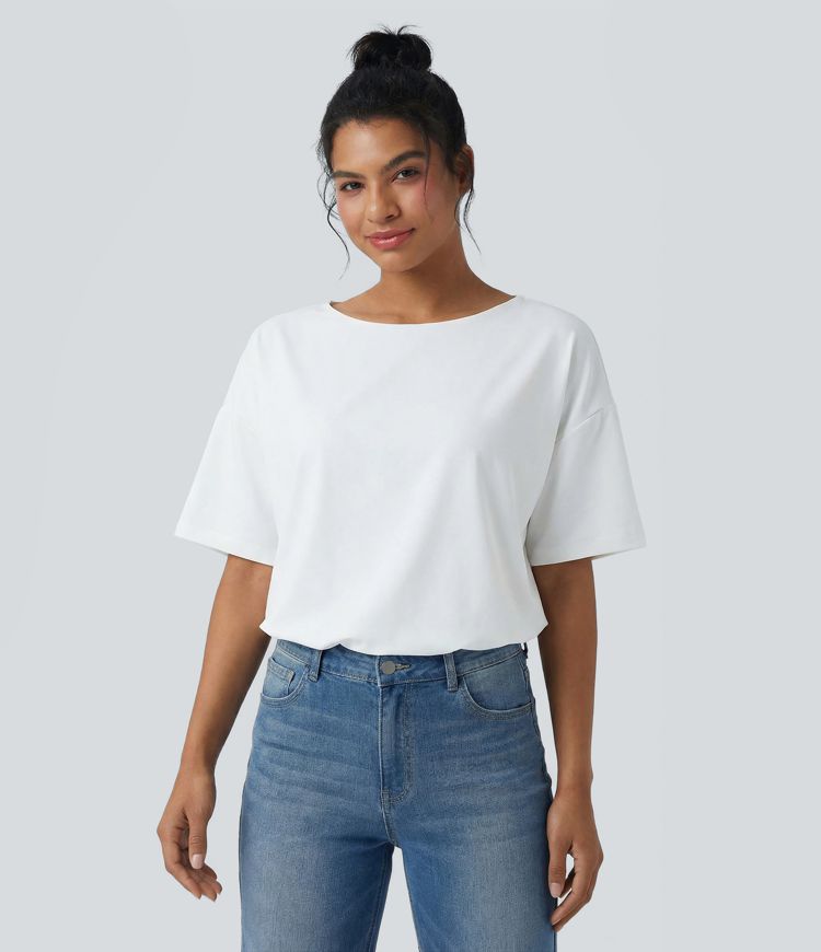 Durable Water Repellent Round Neck Short Sleeve Bubble Hem Casual Top