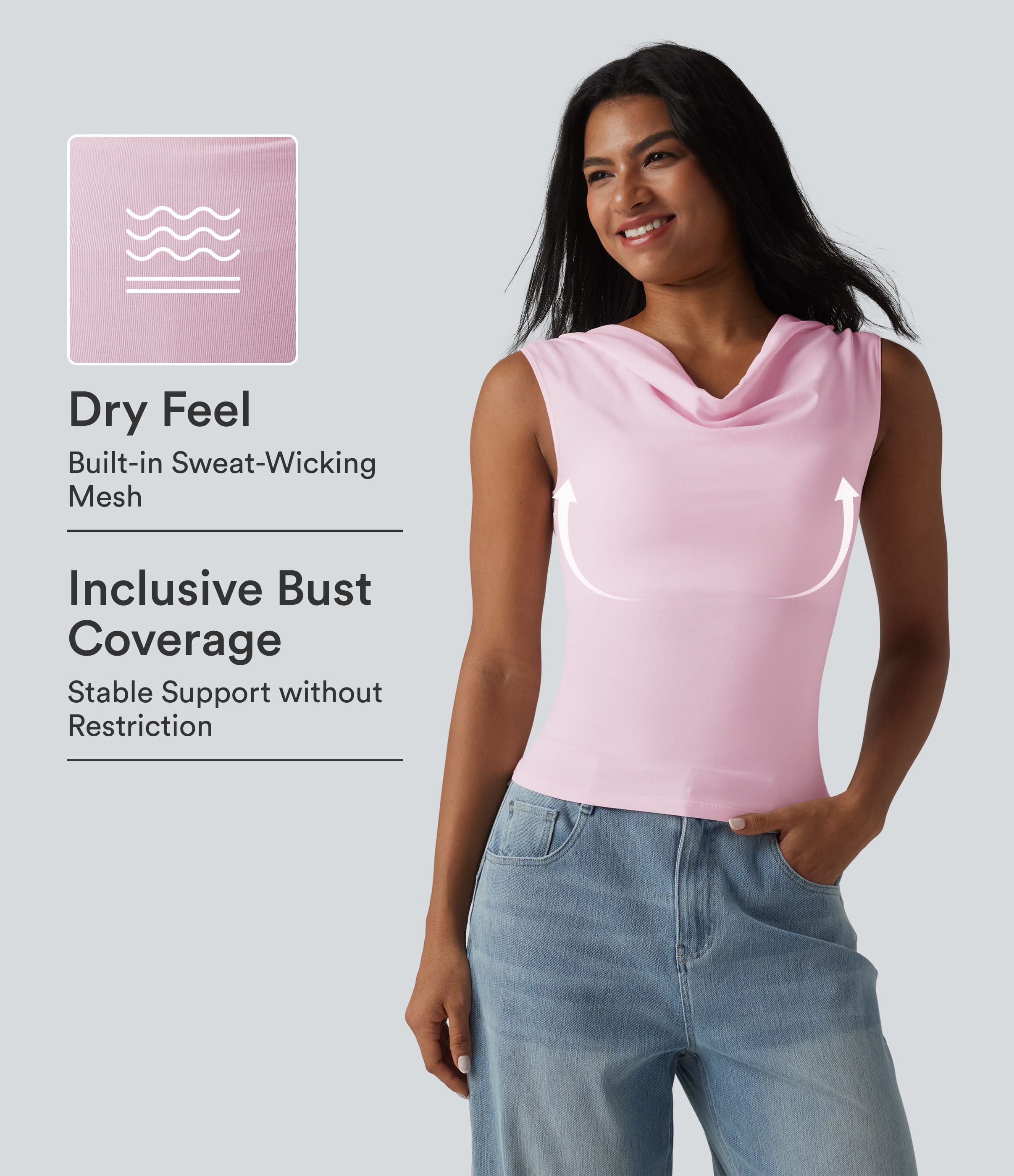 Halara Baumwolljersey-Top mit Wasserfallausschnitt, ärmellos, mit integriertem BH, lässig, Cup-Größen B-DD