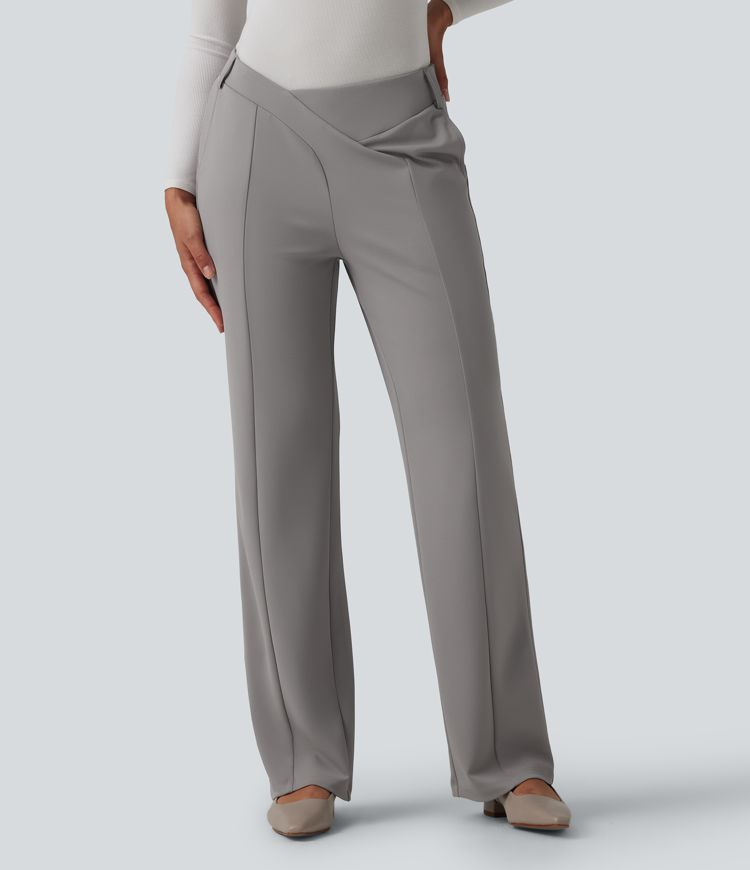 Halara Flex™ Asymmetric Mid Rise Straight Leg Crepe Work Pants with Pockets