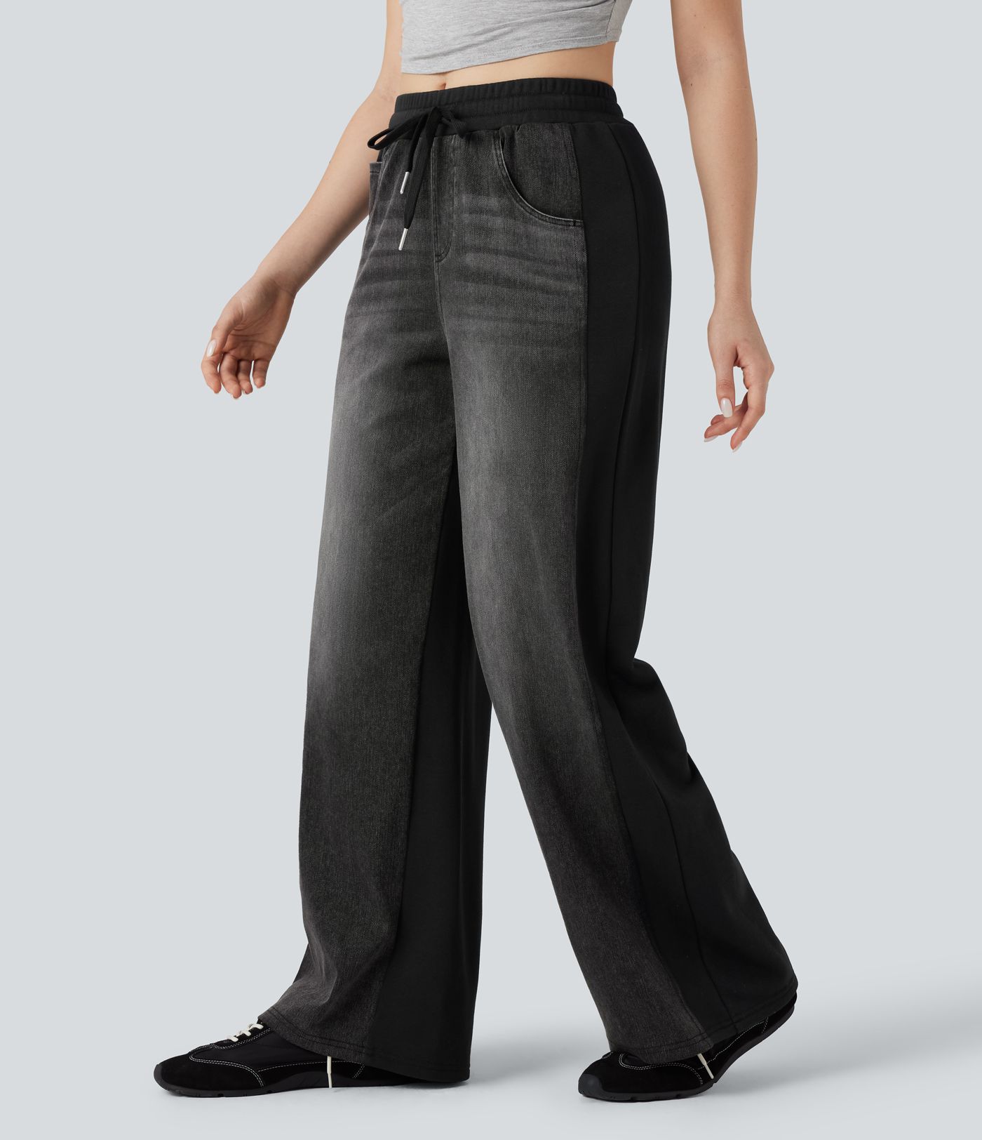 Halara Flex™ jean large décontracté à taille haute, à cordon, avec empiècements colorés et poches