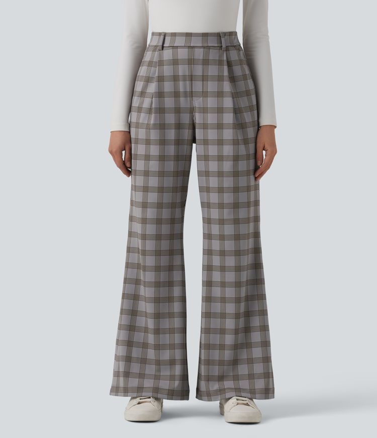 Halara Flex™ High Waisted Plaid Work Flare Pants with Pockets