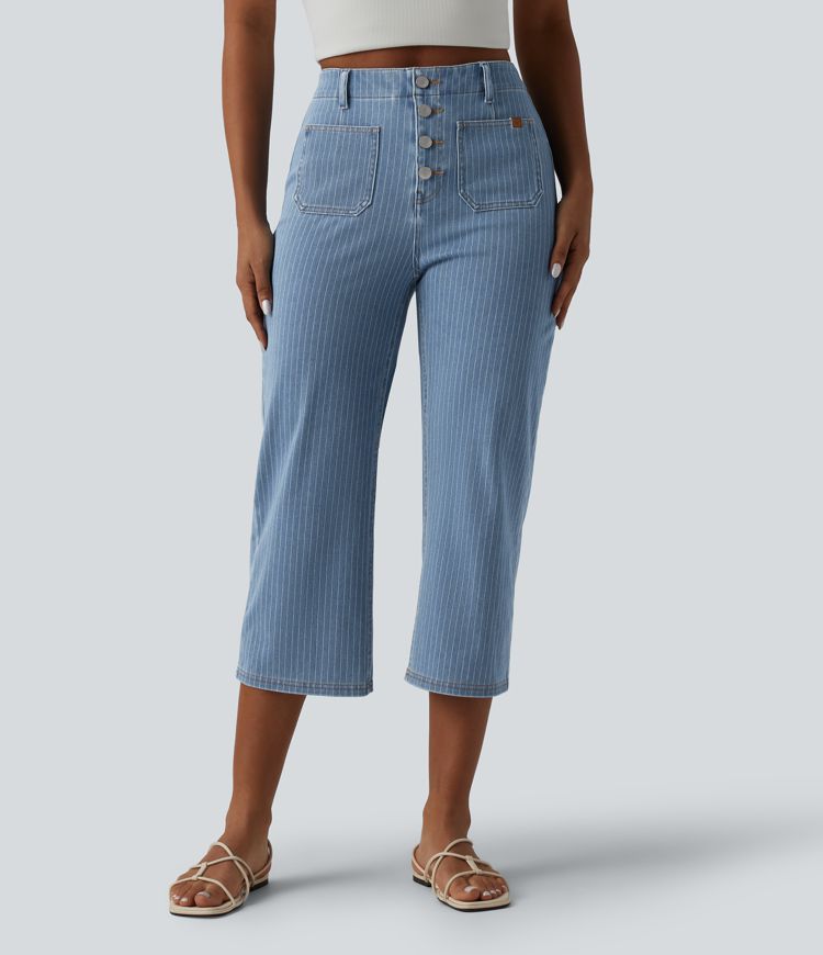 Halara Flex™ High Waisted Stripes Cropped Straight Leg Casual Jeans with Pockets