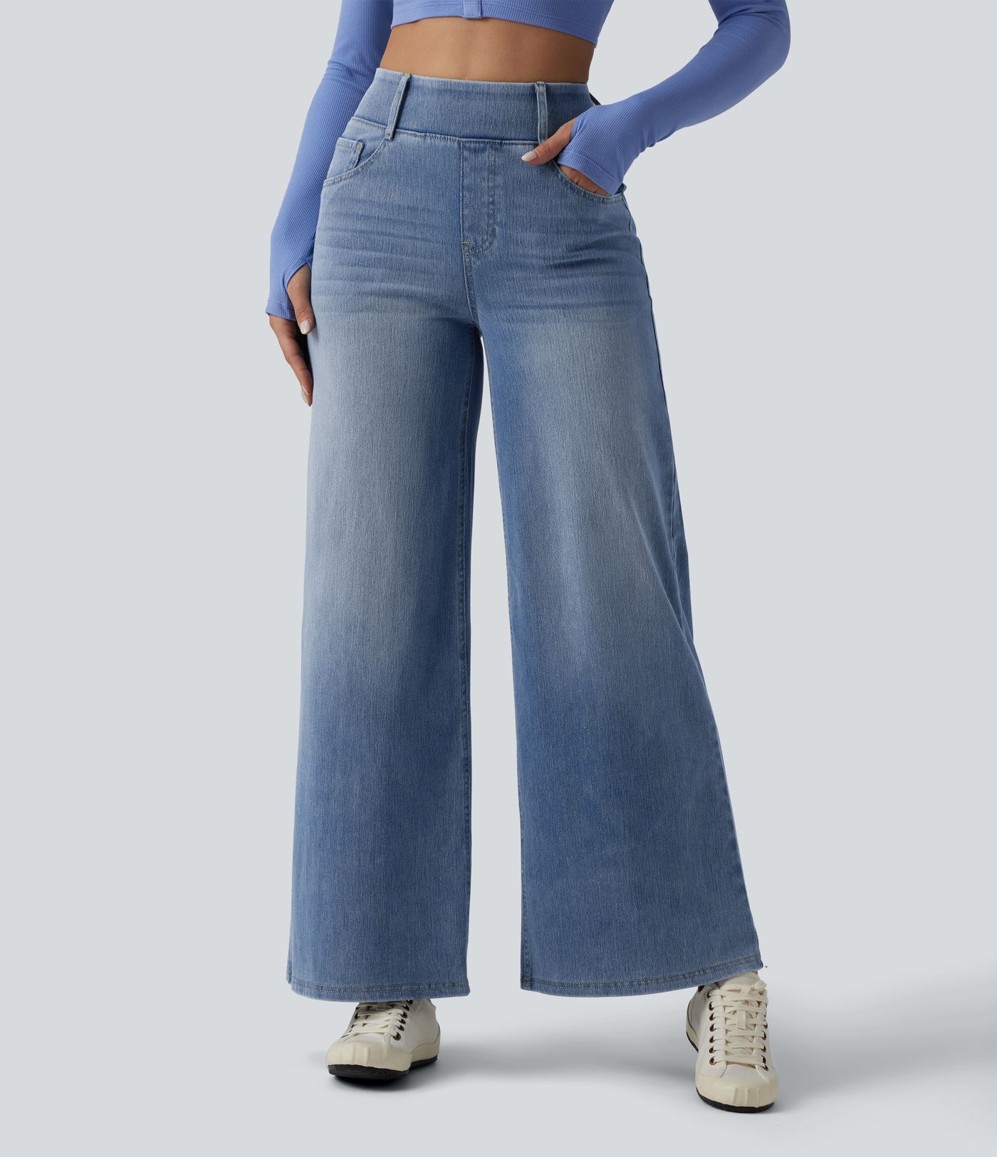 Halara Flex™ High Waisted Wide Leg Denim Casual Leggings with Pockets
