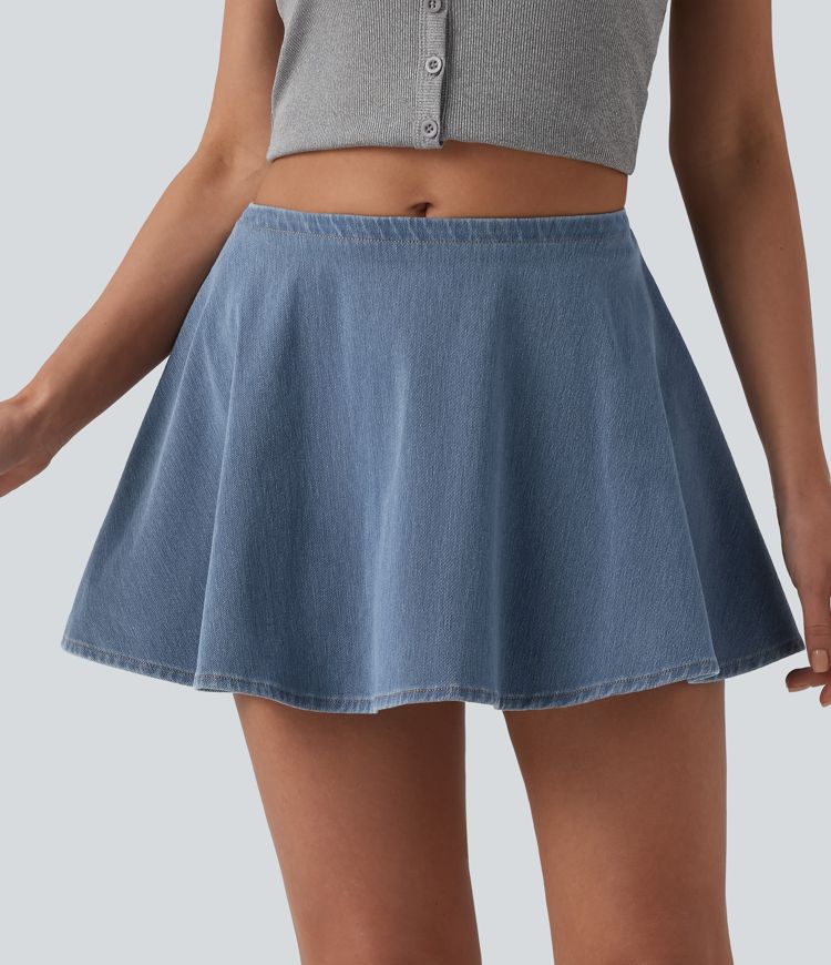 Halara Flex™ Skort casual de denim, talle medio, corte en A