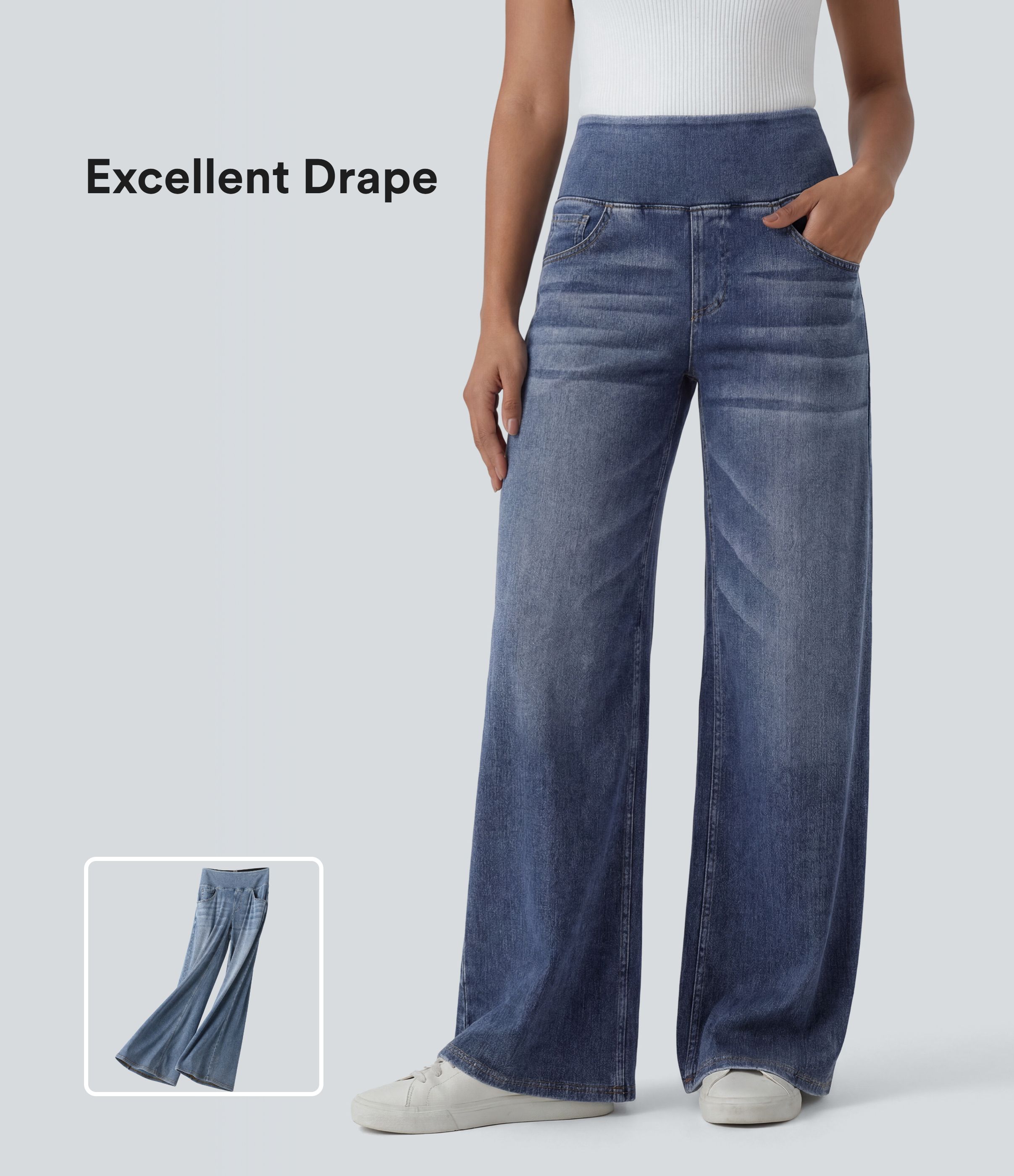 Halara Flex™ Mid Rise Draped Washed Casual Baggy Wide Leg Jeans with Pockets