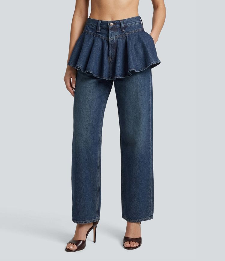 Halara Flex™ Mid Rise Ruffle 2-in-1 Casual Straight Leg Jeans with Pockets