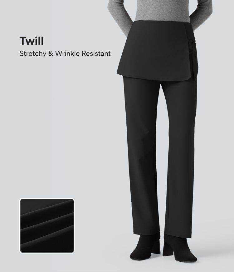 Halara Flex™ Mid Rise Straight Leg Work Skirted Pants with Pockets