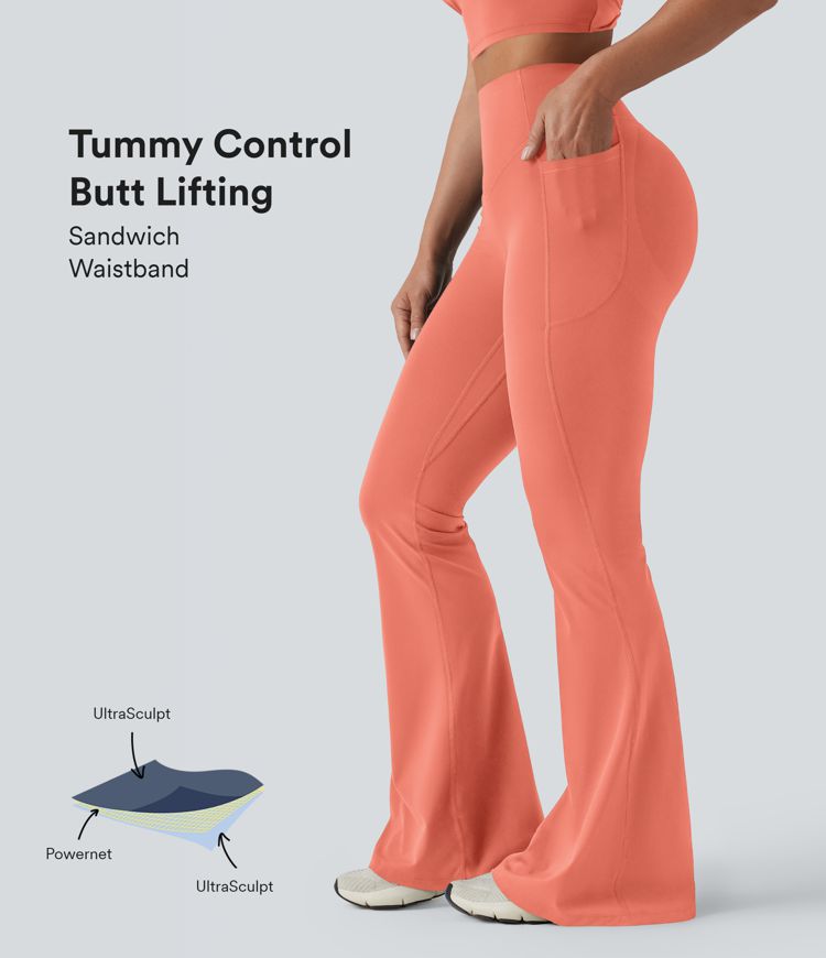 Halara UltraSculpt™ High Waisted Scrunch Butt Lifting Tummy Control Shaping Yoga Flare Leggings with Pockets