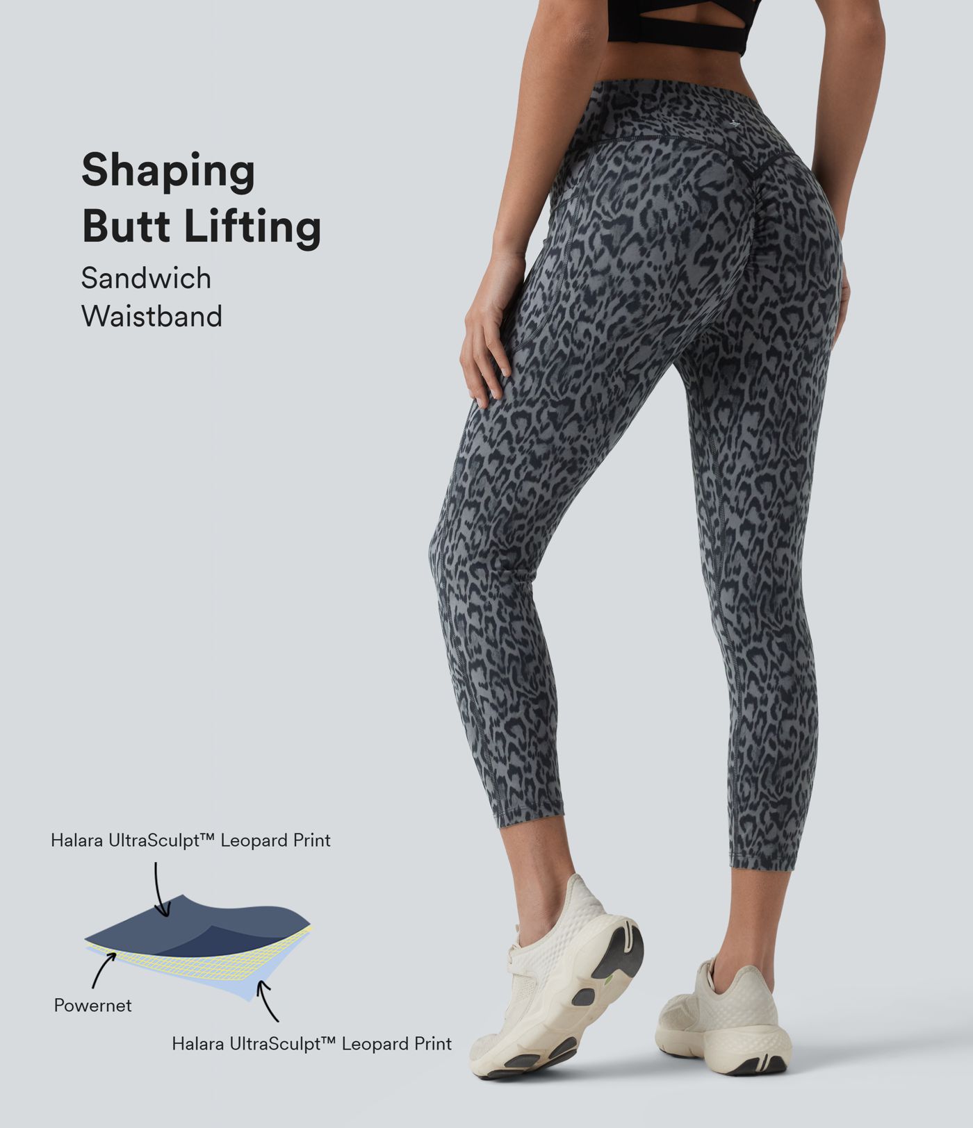 Halara UltraSculpt™ Leopard Print High Waisted Scrunch Butt Lifting Tummy Control Capri Training Leggings with Pockets