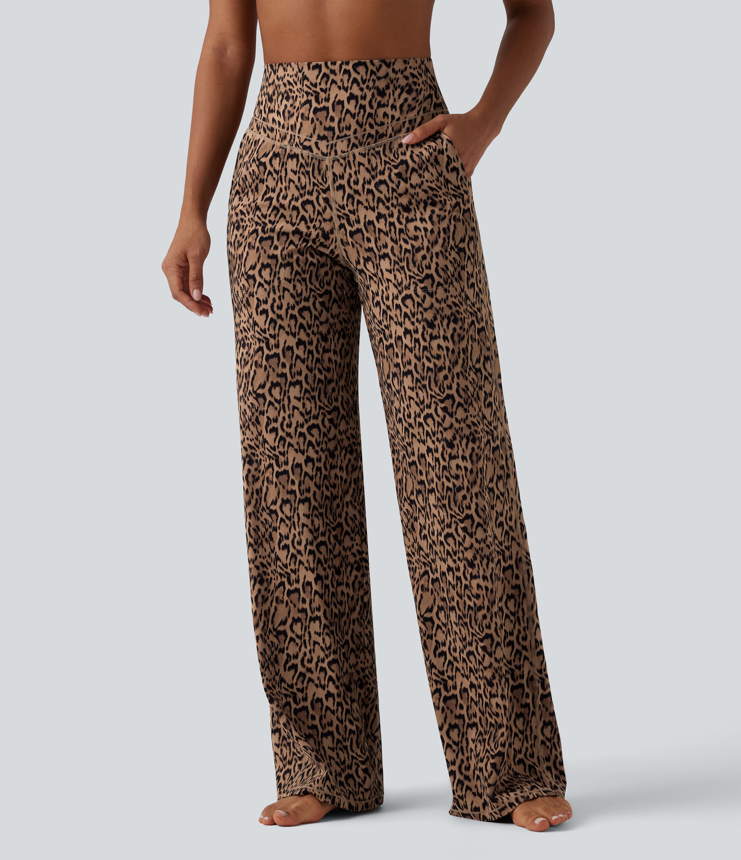 Halara UltraSculpt™ Pantaloni de yoga cu imprimeu leopard, talie înaltă, control al abdomenului, croială dreaptă, cu buzunare