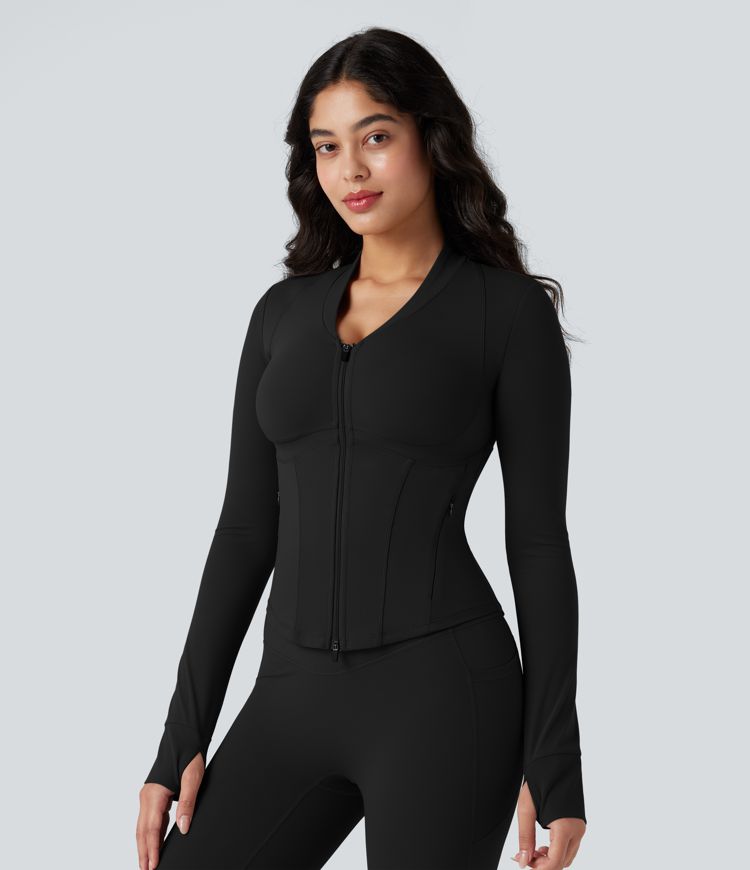 Halara UltraSculpt™ V-neck Push-Up Long Sleeve Thumb Holes Yoga Jacket with Pockets