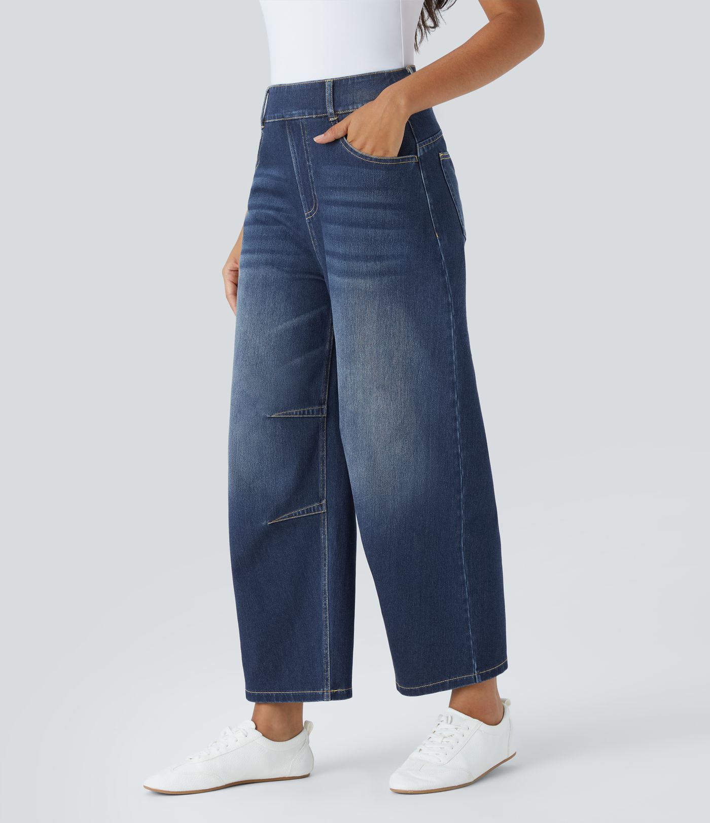 Halara Flex™ Mid Rise Pockets Barrel Leg Casual Jeans