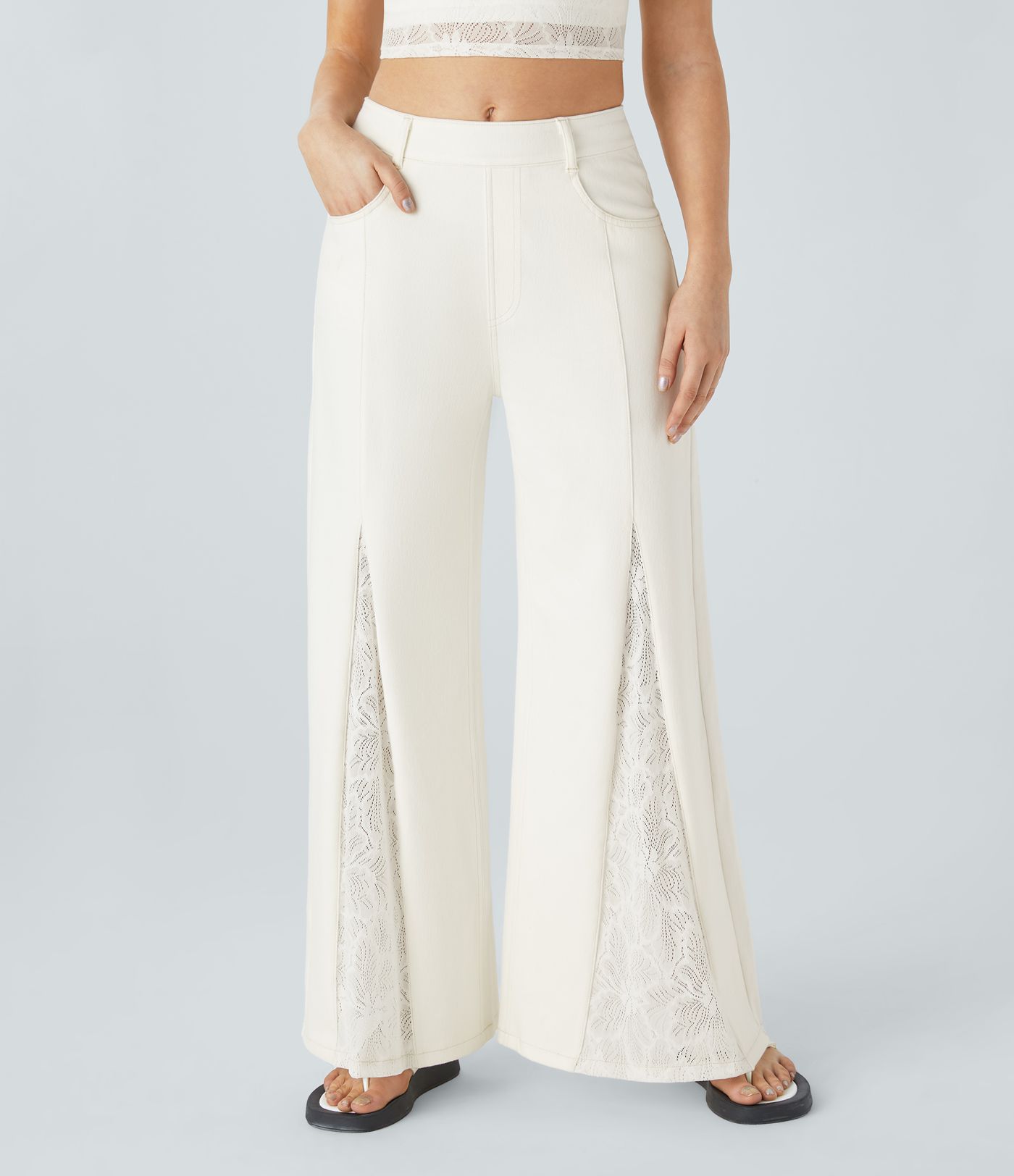 Halara Flex™ Mid Rise Pockets Wide Leg Contrast Lace Casual Jeans