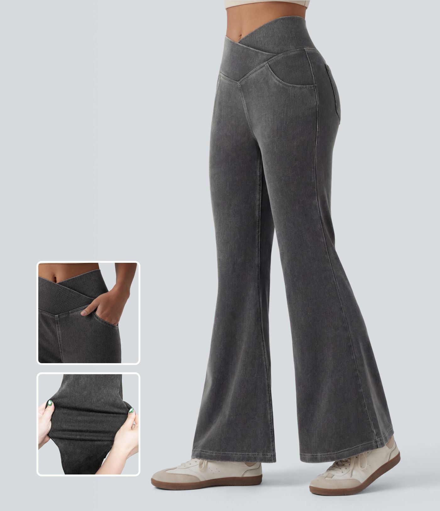 Halara Flex™ High Waisted Crossover Pocket Washed Casual Jeans