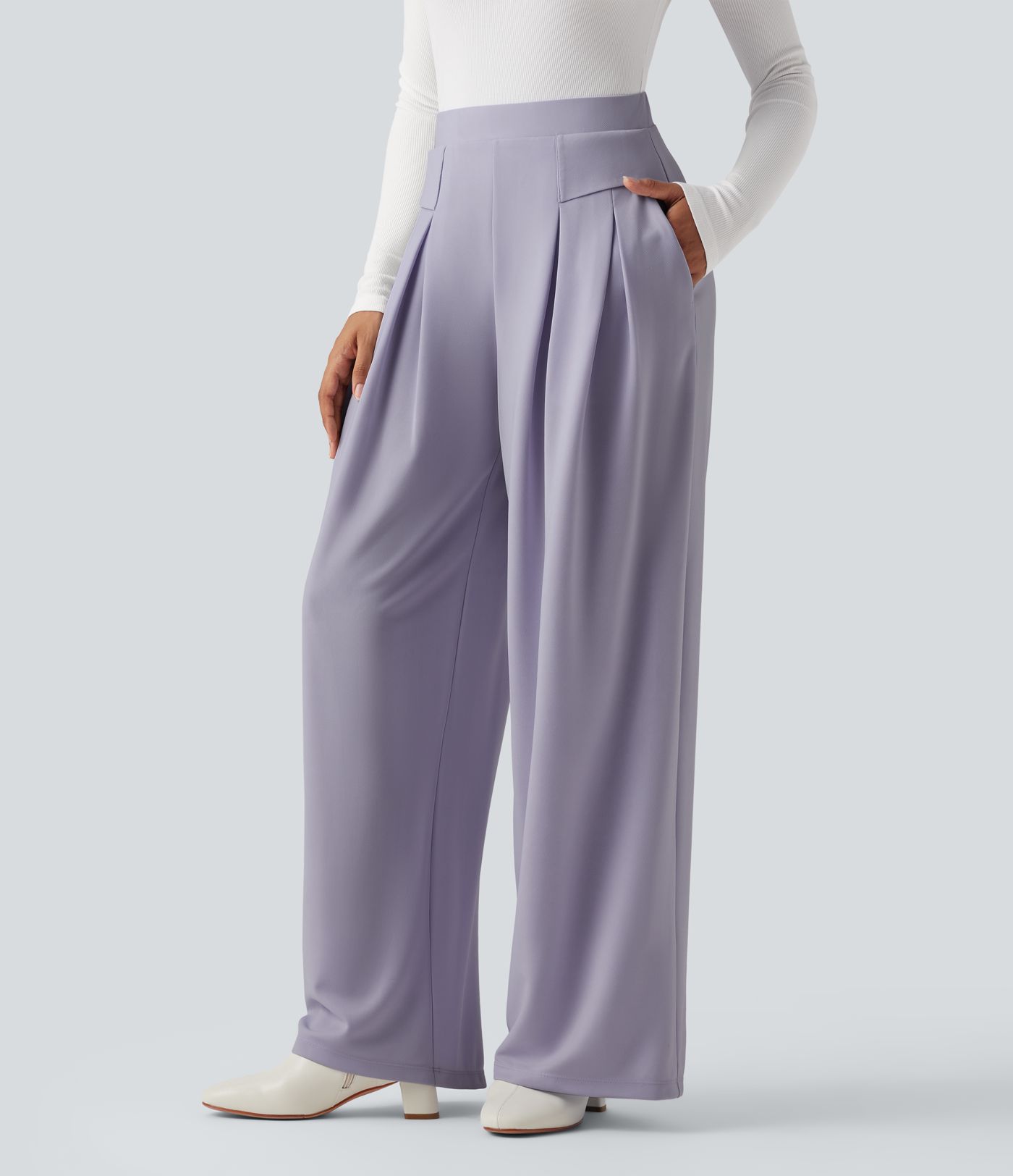 High Waisted Work Wide Leg Pants with Pockets
