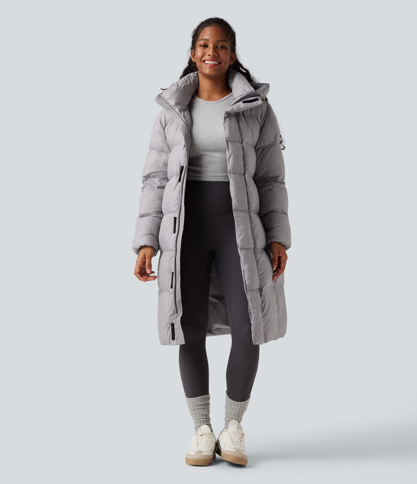 Hooded Long Sleeve Zipper Longline Casual Padded Jacket with Pockets