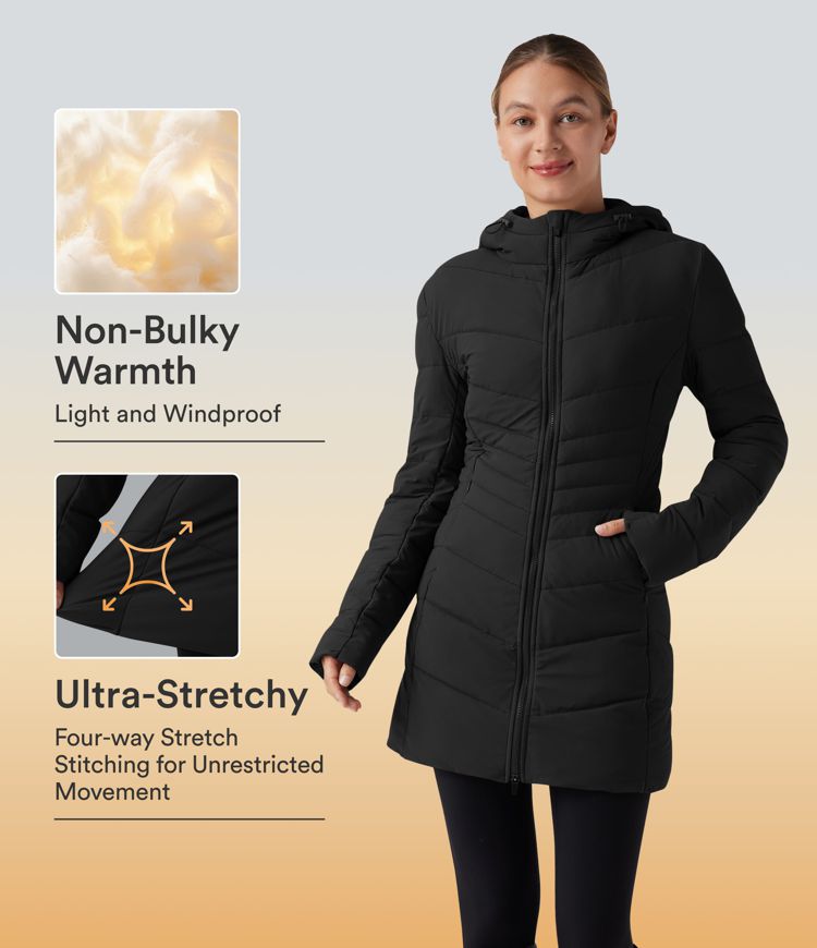 PuffFlex Hooded Longline Stretchy Casual Padded Jacket with Pockets