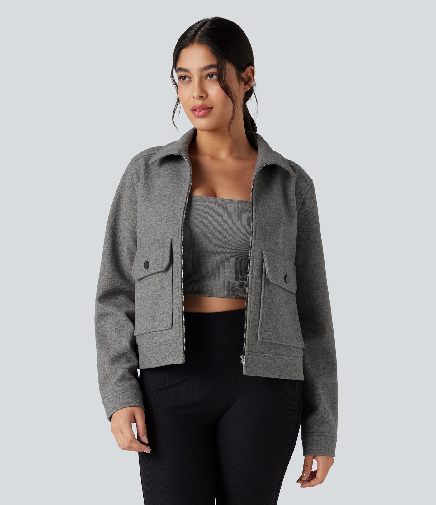 Long Sleeve Zipper Fleece Casual Jacket with Pockets