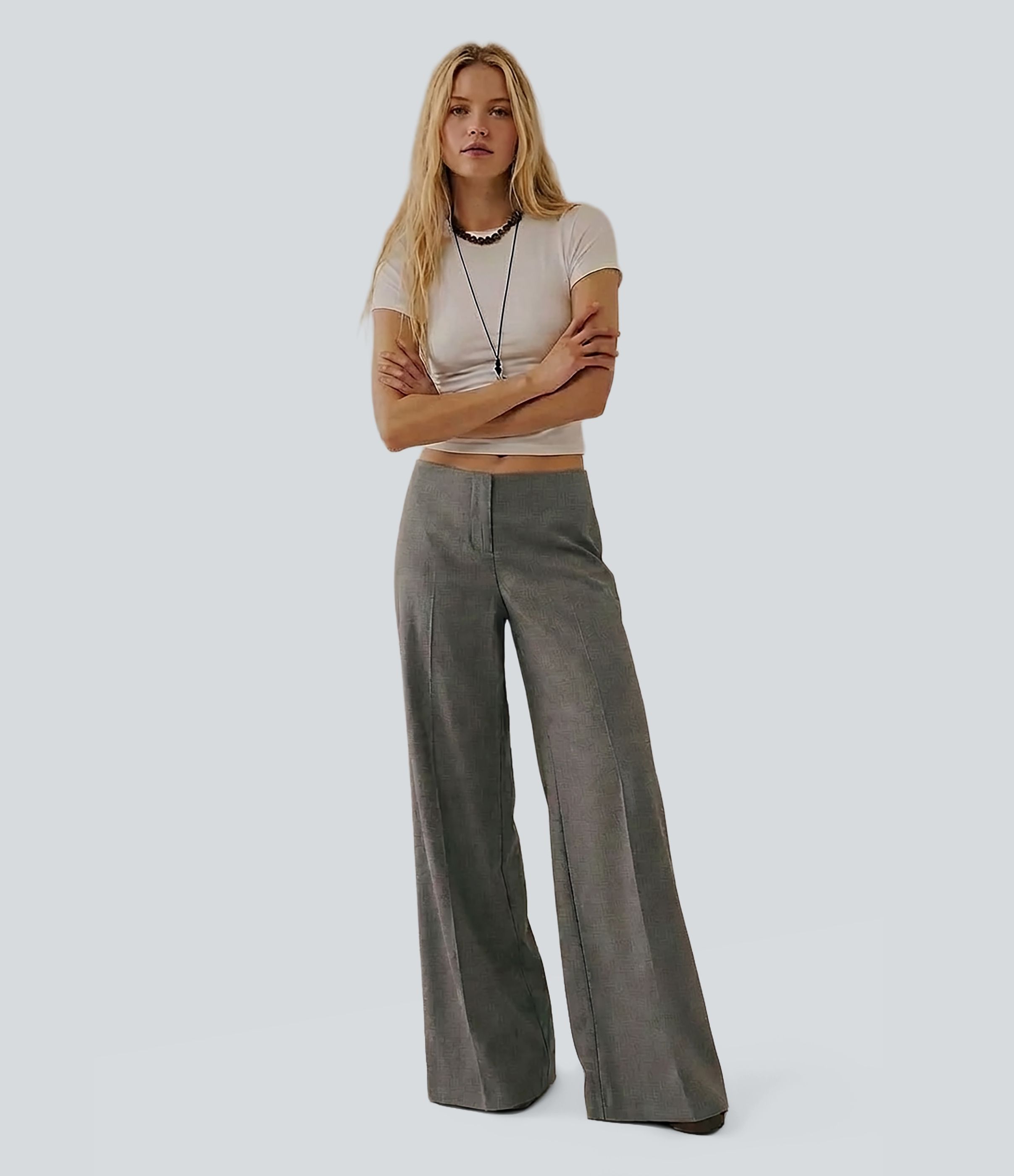 Low Rise Wide Leg Work Tailored Pants