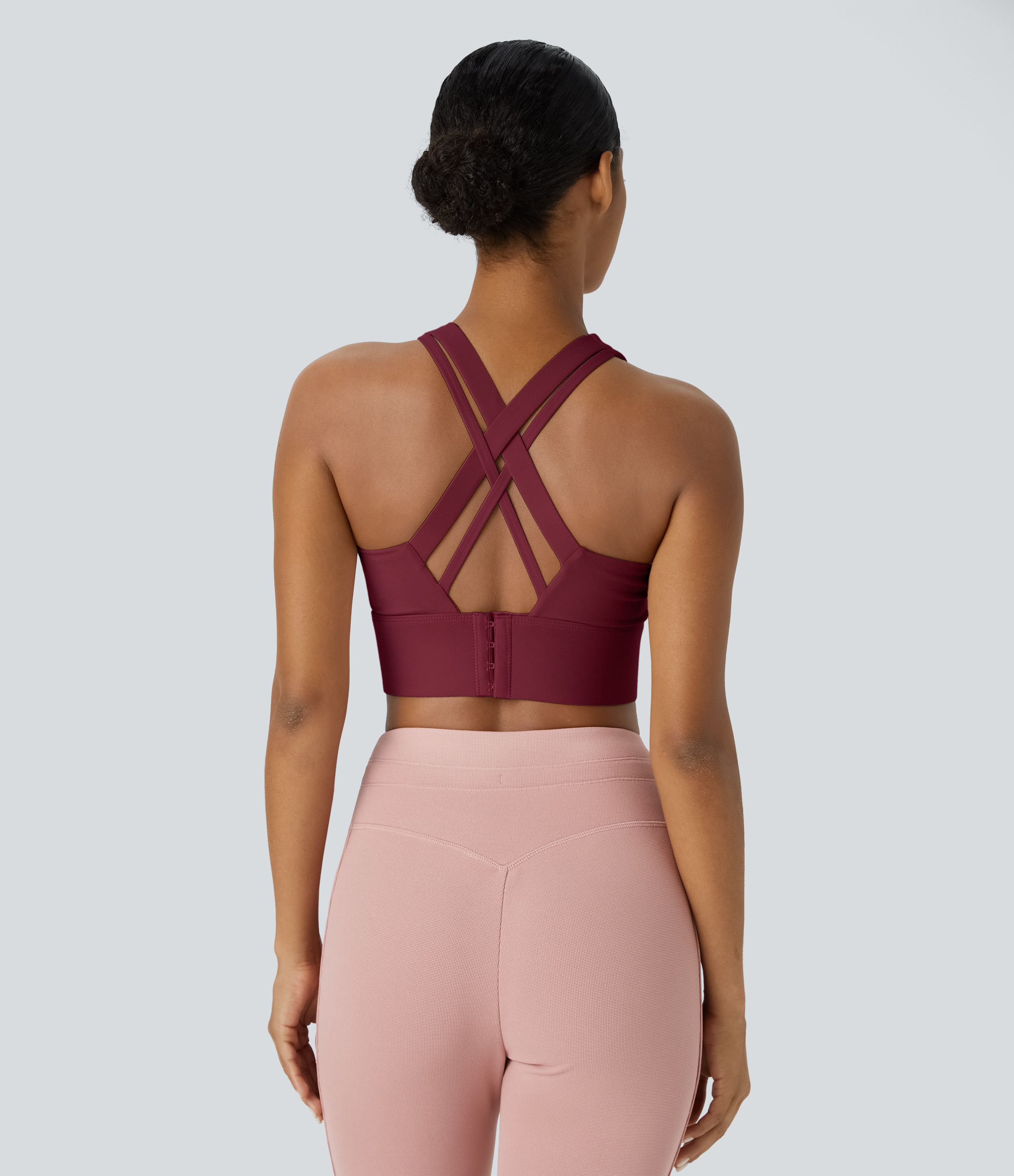 Verstellbarer Sport-BH mit mittlerem Halt und U-Ausschnitt für den Laufsport, rückenfrei, gekreuzt