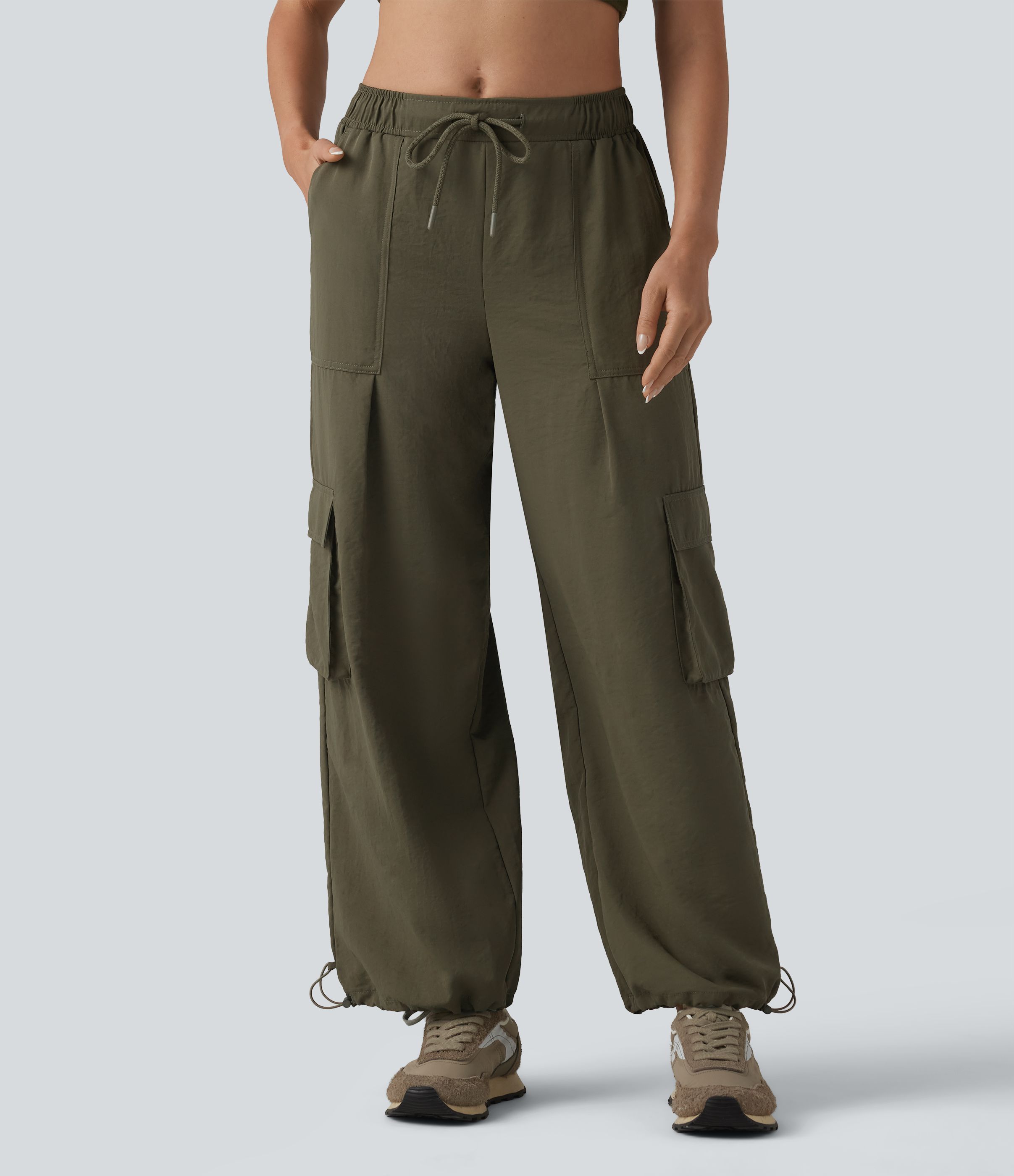 Joggers cargo casual de tiro medio con cordón, pernera tipo barril y bolsillos