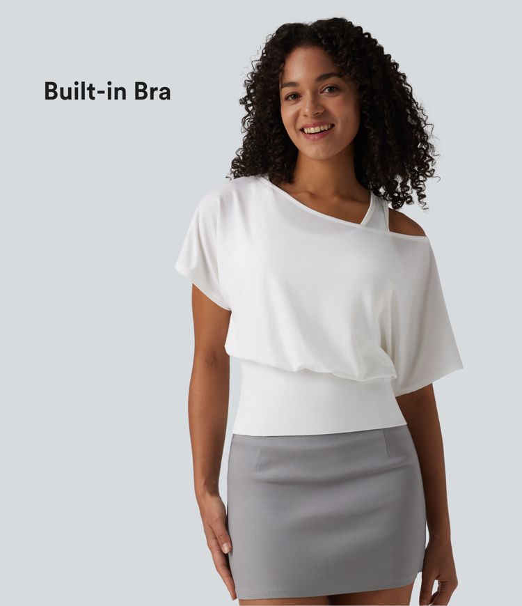 Top décontracté 2-en-1 à une épaule, manches courtes, à séchage rapide