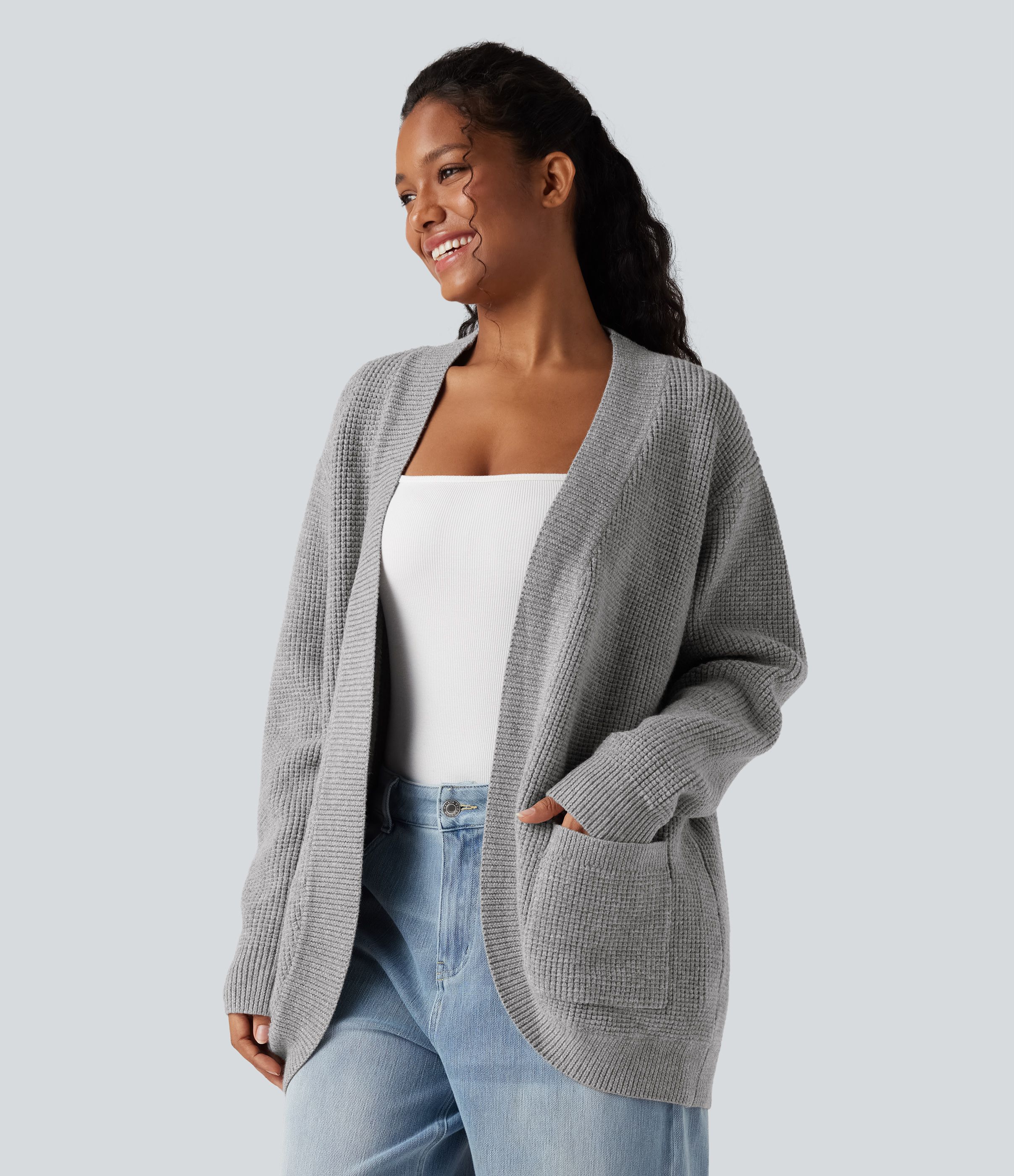 Open Front Long Sleeve Casual Cardigan with Pockets