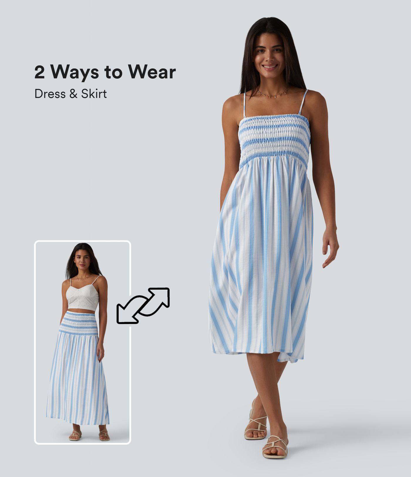 Removable Straps Shirred Stripes Linen-Feel Resort Slip Dress